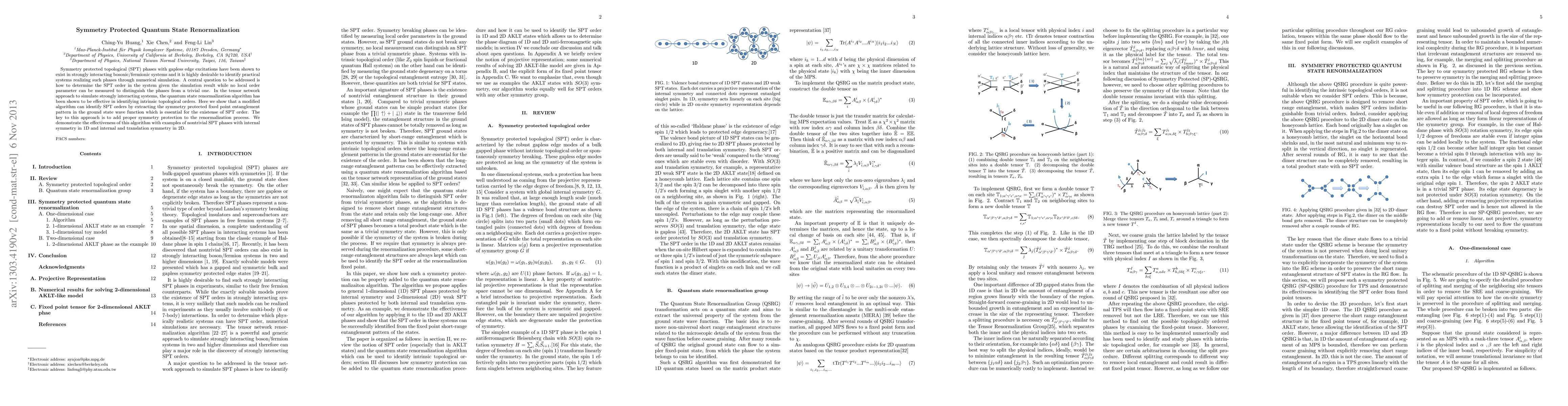 This paper proposes a modified quantum state renormalization algorithm to identify symmetry protected topological (SPT) phases in strongly interacting systems, using fixed point entanglement patterns. The method adds symmetry protection to the process and is demonstrated to work effectively for AKLT states in 1D and 2D.