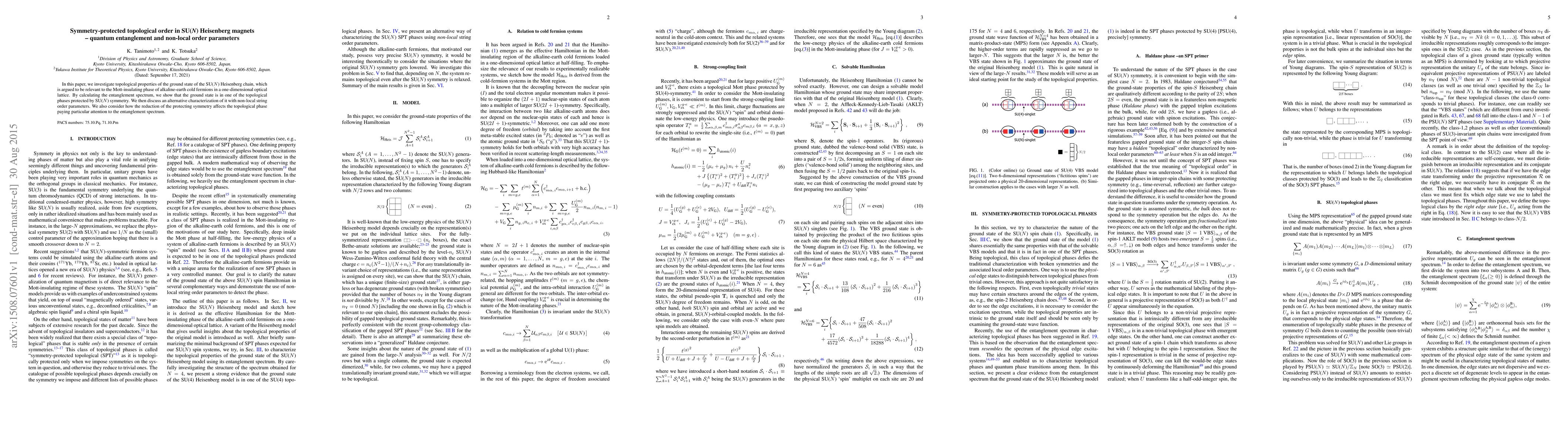 The research investigates topological properties of a ground state in an SU(N) Heisenberg magnet, revealing a protected phase with non-local order parameters and its behavior under symmetry reduction.