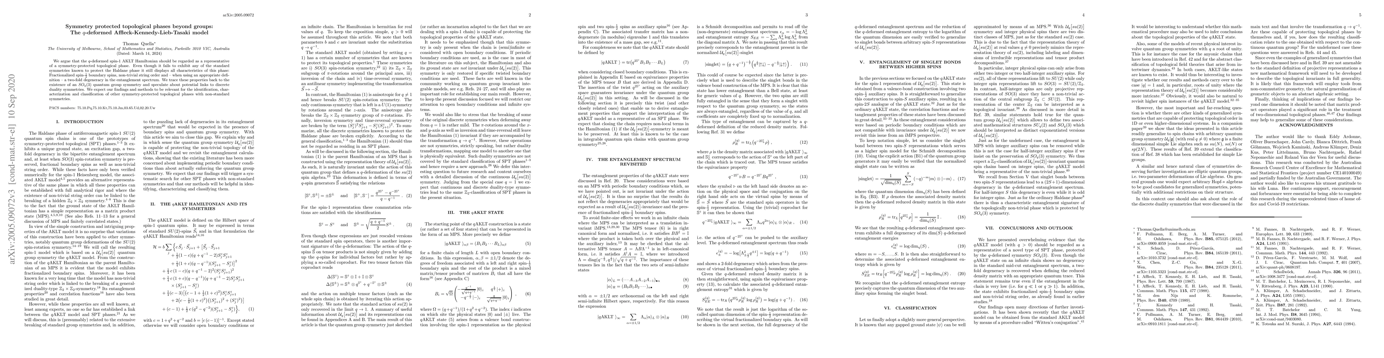 We argue that the $q$-deformed spin-1 AKLT Hamiltonian should be regarded as a representative of a symmetry protected topological phase. Even though it fails to exhibit any of the standard symmetries known to protect the Haldane phase it still displays all characteristics of this phase: Fractionalized spin-$\frac{1}{2}$ boundary spins, non-trivial string order and - when using an appropriate definition - a two-fold degeneracy in the entanglement spectrum. We trace these properties back to the existence of an $SO_q(3)$ quantum group symmetry and speculate about potential links to discrete duality symmetries. We expect our findings and methods to be relevant for the identification, characterization and classification of other symmetry-protected topological phases with non-standard symmetries.