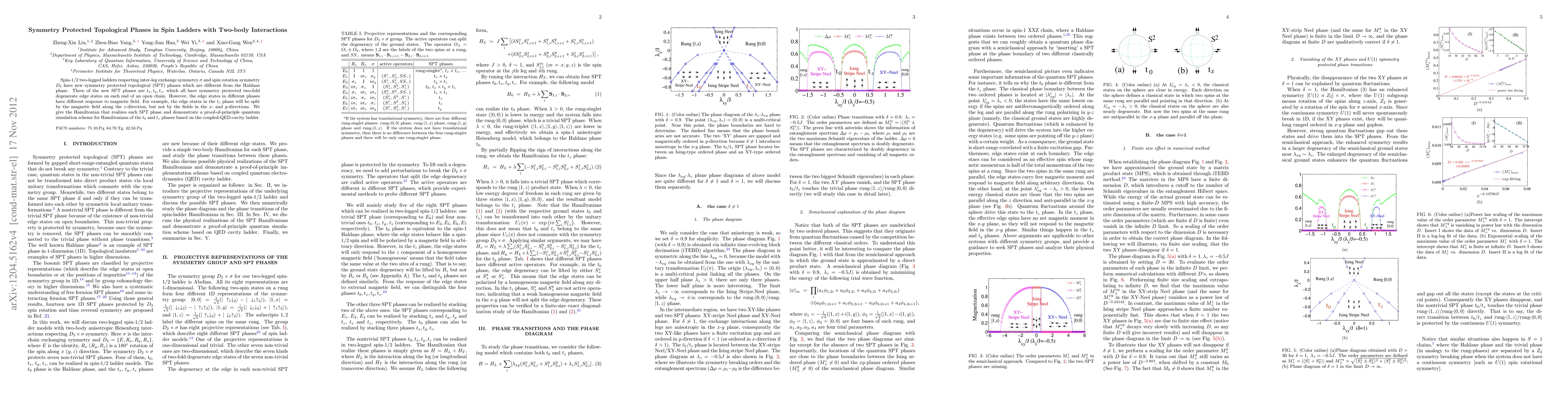 This paper identifies new symmetry protected topological (SPT) phases in spin-1/2 two-legged ladders with distinct inter-leg exchange and spin rotation symmetries, differing from the Haldane phase. These phases exhibit unique two-fold degenerate edge states, with specific responses to magnetic fields, such as the tz phase being split only by z-direction fields. The study also proposes a quantum simulation scheme for realizing these phases.