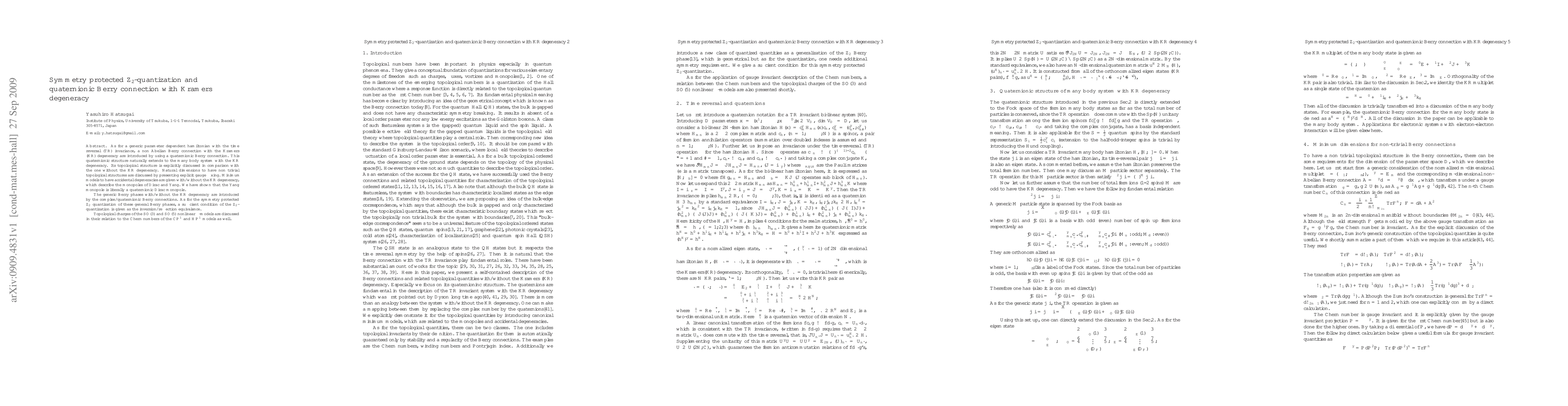 This paper explores the topological properties of Hamiltonians with time reversal invariance and Kramers degeneracy, introducing a non-Abelian Berry connection via quaternionic structures. It discusses the $\mathbb{Z}_2$ quantization conditions and compares topological charges in SO(3) and SO(5) models to those in $CP^1$ and $HP^1$ models.