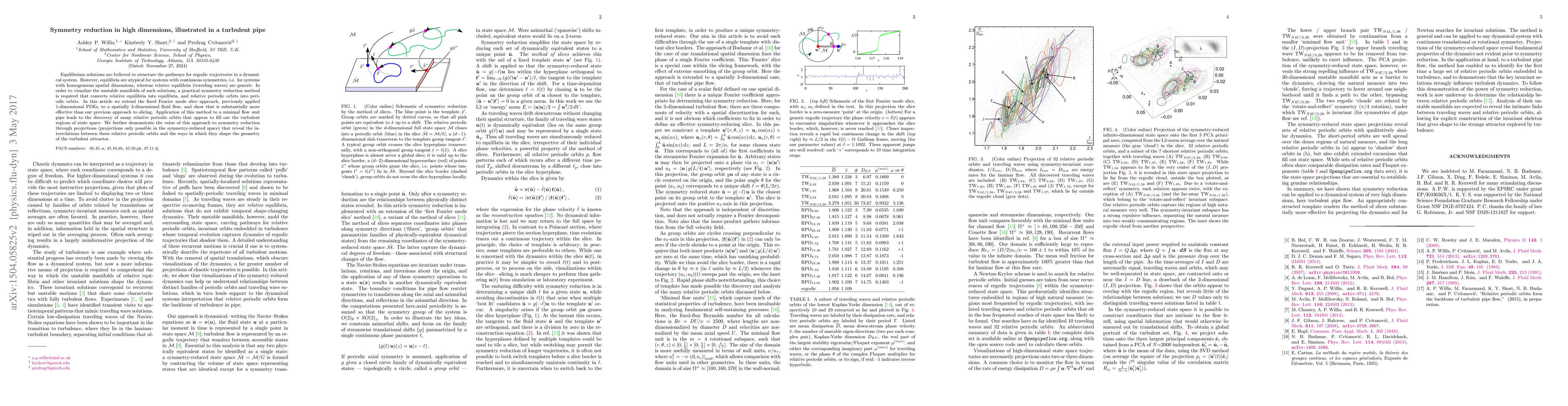 Equilibrium solutions are believed to structure the pathways for ergodic trajectories in a dynamical system. However, equilibria are atypical for systems with continuous symmetries, i.e. for systems with homogeneous spatial dimensions, whereas relative equilibria (traveling waves) are generic. In order to visualize the unstable manifolds of such solutions, a practical symmetry reduction method is required that converts relative equilibria into equilibria, and relative periodic orbits into periodic orbits. In this article we extend the fixed Fourier mode slice approach, previously applied 1-dimensional PDEs, to a spatially 3-dimensional fluid flow, and show that is substantially more effective than our previous approach to slicing. Application of this method to a minimal flow unit pipe leads to the discovery of many relative periodic orbits that appear to fill out the turbulent regions of state space. We further demonstrate the value of this approach to symmetry reduction through projections (projections only possible in the symmetry-reduced space) that reveal the interrelations between these relative periodic orbits and the ways in which they shape the geometry of the turbulent attractor.