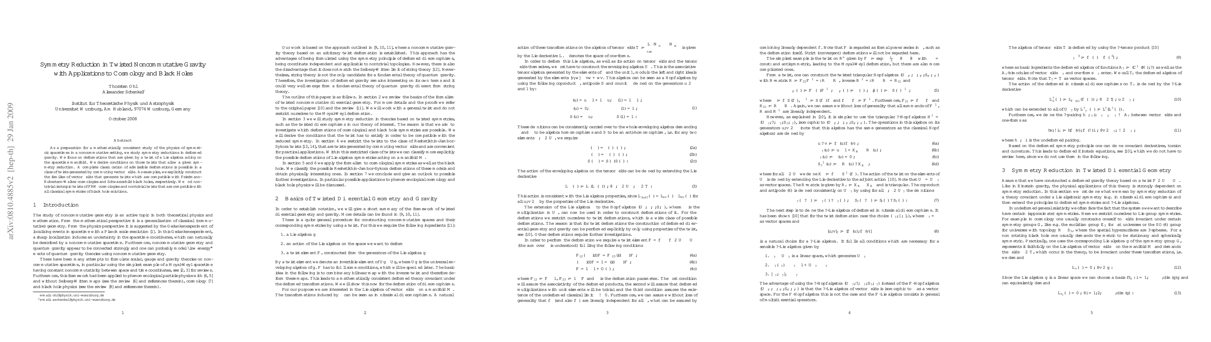 This paper explores symmetry reductions in twisted noncommutative gravity, focusing on deformations via twists of Lie algebras. It classifies admissible deformations generated by commuting vector fields and applies these findings to Friedmann-Robertson-Walker cosmologies and Schwarzschild black holes, revealing nontrivial isotropic twists and compatible twists for black hole symmetries.
