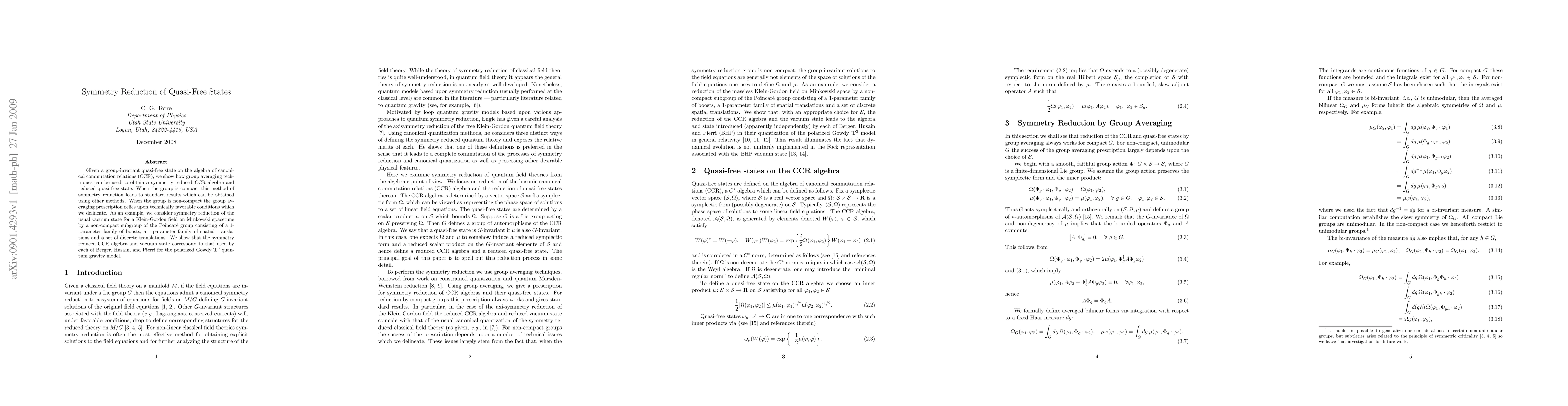 Researchers develop a method to reduce quasi-free states in quantum mechanics using group averaging techniques, leading to symmetry-reduced algebras and states that match existing results for certain models.
