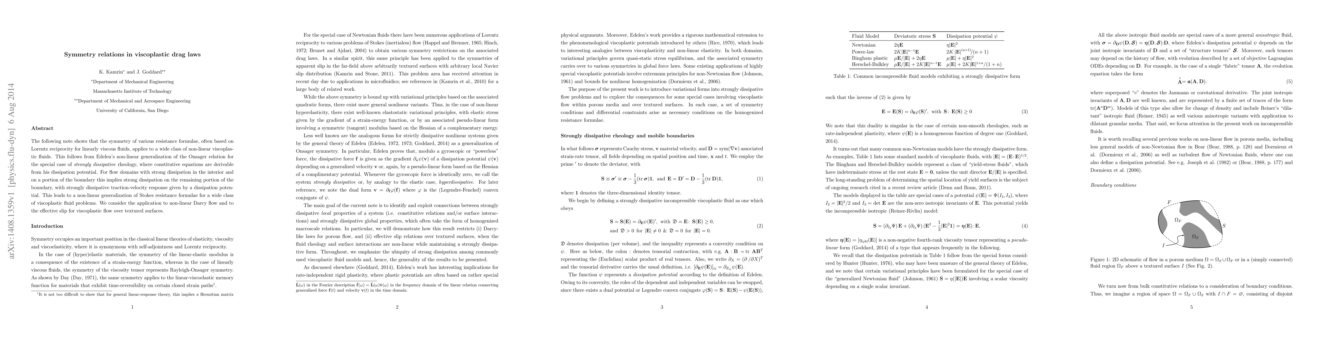 The following note shows that the symmetry of various resistance formulae, often based on Lorentz reciprocity for linearly viscous fluids, applies to a wide class of non-linear viscoplastic fluids. This follows from Edelen's non-linear generalization of the Onsager relation for the special case of \emph{strongly dissipative} rheology, where constitutive equations are derivable from his dissipation potential. For flow domains with strong dissipation in the interior and on a portion of the boundary this implies strong dissipation on the remaining portion of the boundary, with strongly dissipative traction-velocity response given by a dissipation potential. This leads to a non-linear generalization of Stokes resistance formulae for a wide class of viscoplastic fluid problems. We consider the application to non-linear Darcy flow and to the effective slip for viscoplastic flow over textured surfaces.