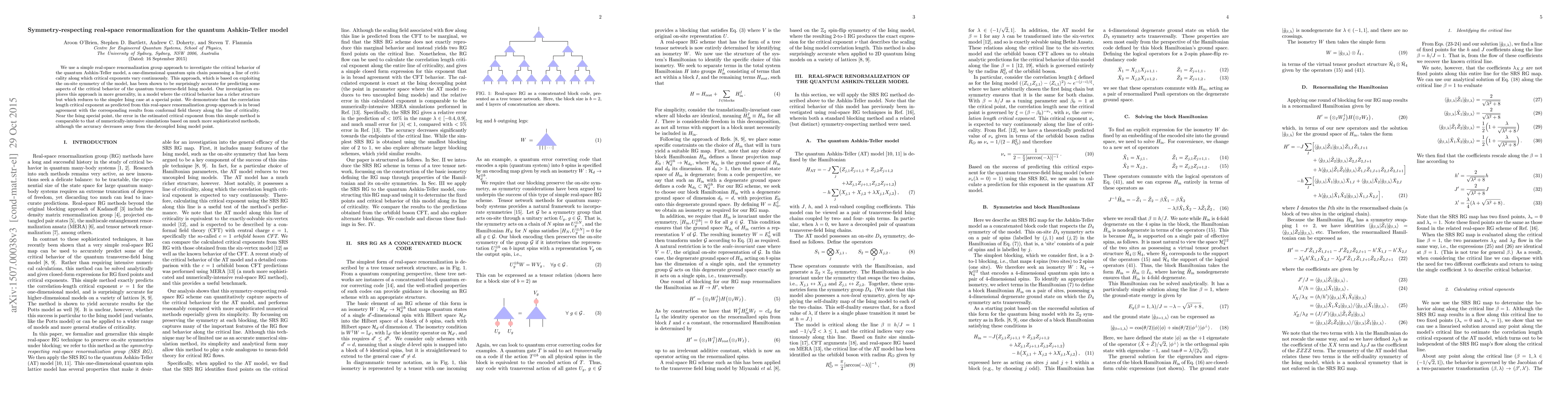 This paper employs a symmetry-respecting real-space renormalization group method to study the critical behavior of the quantum Ashkin-Teller model, finding that the method accurately predicts the correlation length critical exponent, especially near the Ising model point, comparable to more complex numerical simulations. The approach's accuracy diminishes further from this special point.