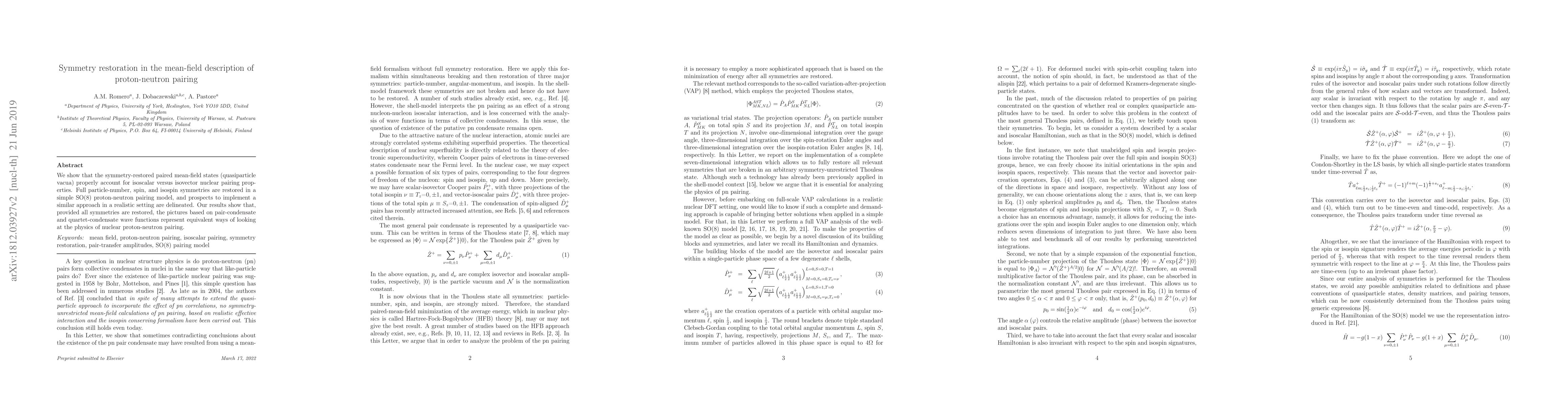 Research shows that restoring symmetries in nuclear pairing models accurately predicts isoscalar and isovector properties. This approach provides an equivalent way to describe proton-neutron pairing physics using pair-condensate or quartet-condensate wave functions.