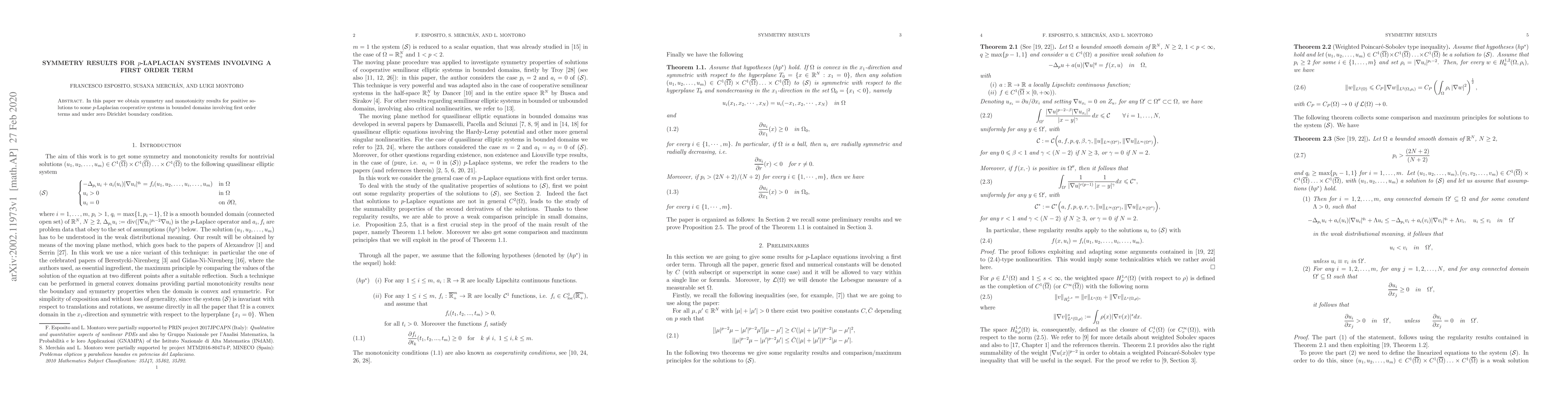In this paper we obtain symmetry and monotonicity results for positive solutions to some $p$-Laplacian cooperative systems in bounded domains involving first order terms and under zero Dirichlet boundary condition.