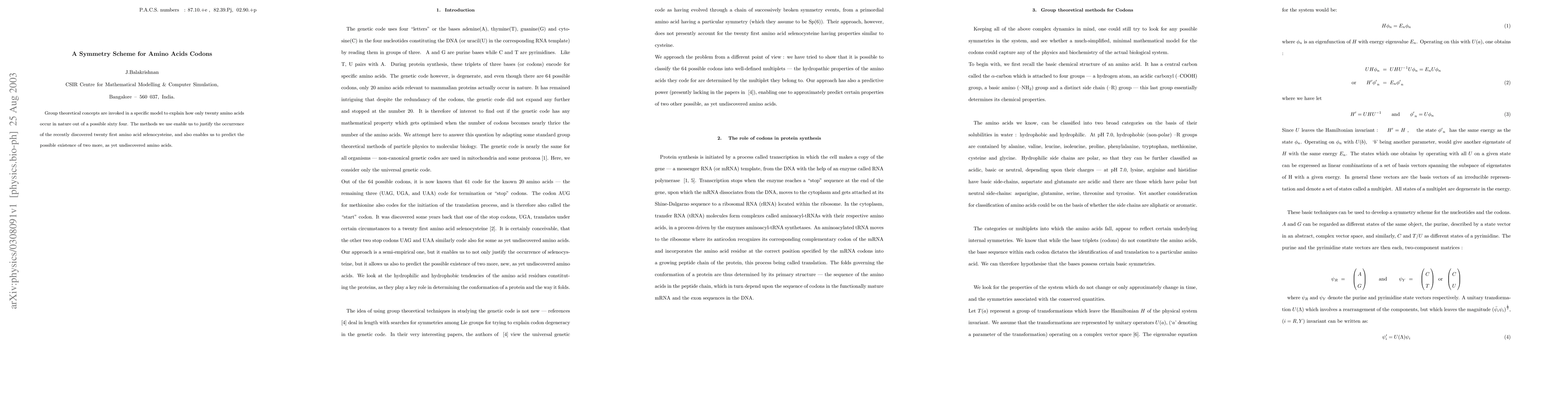 A study uses group theory to explain why only 20 amino acids exist in nature, predicting potential discoveries of new ones like selenocysteine.