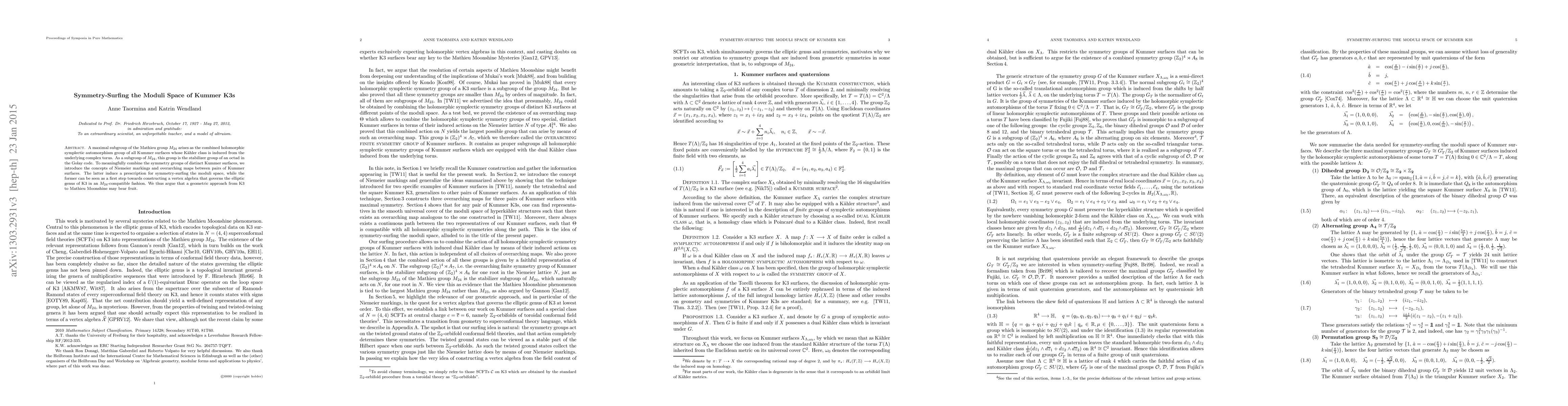 A maximal subgroup of the Mathieu group M24 arises as the combined holomorphic symplectic automorphism group of all Kummer surfaces whose Kaehler class is induced from the underlying complex torus. As a subgroup of M24, this group is the stabilizer group of an octad in the Golay code. To meaningfully combine the symmetry groups of distinct Kummer surfaces, we introduce the concepts of Niemeier markings and overarching maps between pairs of Kummer surfaces. The latter induce a prescription for symmetry-surfing the moduli space, while the former can be seen as a first step towards constructing a vertex algebra that governs the elliptic genus of K3 in an M24-compatible fashion. We thus argue that a geometric approach from K3 to Mathieu Moonshine may bear fruit.