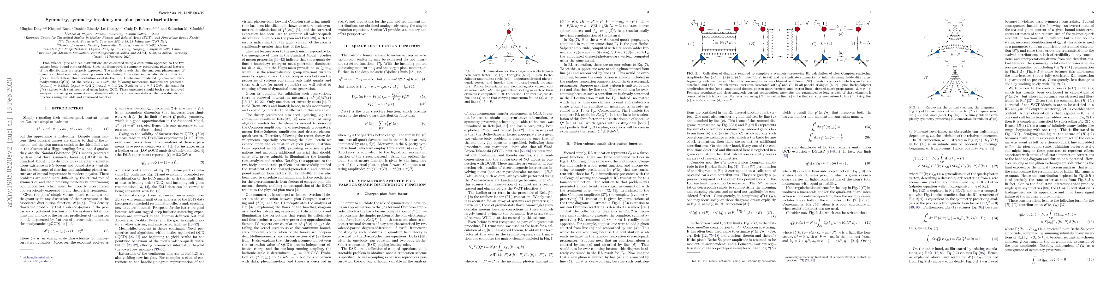Pion valence, glue and sea distributions are calculated using a continuum approach to the two valence-body bound-state problem. Since the framework is symmetry preserving, physical features of the distributions are properly expressed. The analysis reveals that the emergent phenomenon of dynamical chiral symmetry breaking causes a hardening of the valence-quark distribution function, ${q}^\pi(x)$. Nevertheless, this distribution exhibits the $x\simeq 1$ behaviour predicted by quantum chromodynamics (QCD). At the scale $\zeta_2:=2\,$GeV, the following momentum fractions are predicted: $\langle x_{\rm valence} \rangle = 0.48(3)$, $\langle x_{\rm glue} \rangle = 0.41(2)$, $\langle x_{\rm sea} \rangle = 0.11(2)$. Evolving to $\zeta=5.2\,$GeV, the result for ${q}^\pi(x)$ agrees with that computed using lattice QCD. These outcomes should both spur improved analyses of existing experiments and stimulate efforts to obtain new data on the pion distribution functions using available and envisioned facilities.