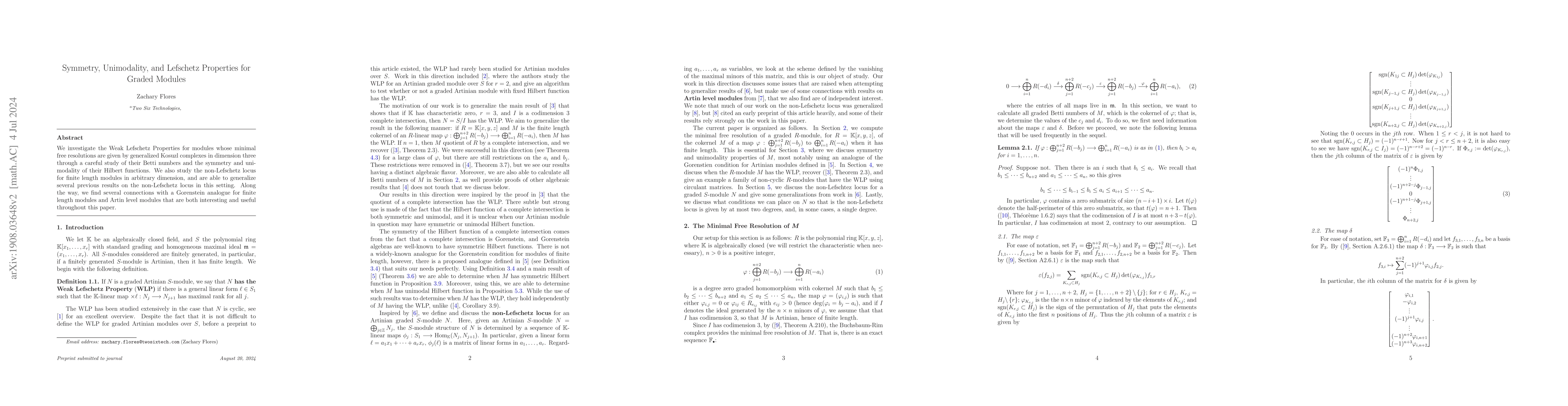 Researchers investigate symmetry, unimodality, and Lefschetz properties for graded modules, focusing on the cokernel of a specific map and its connection to Artin level modules and non-Lefschetz locus.