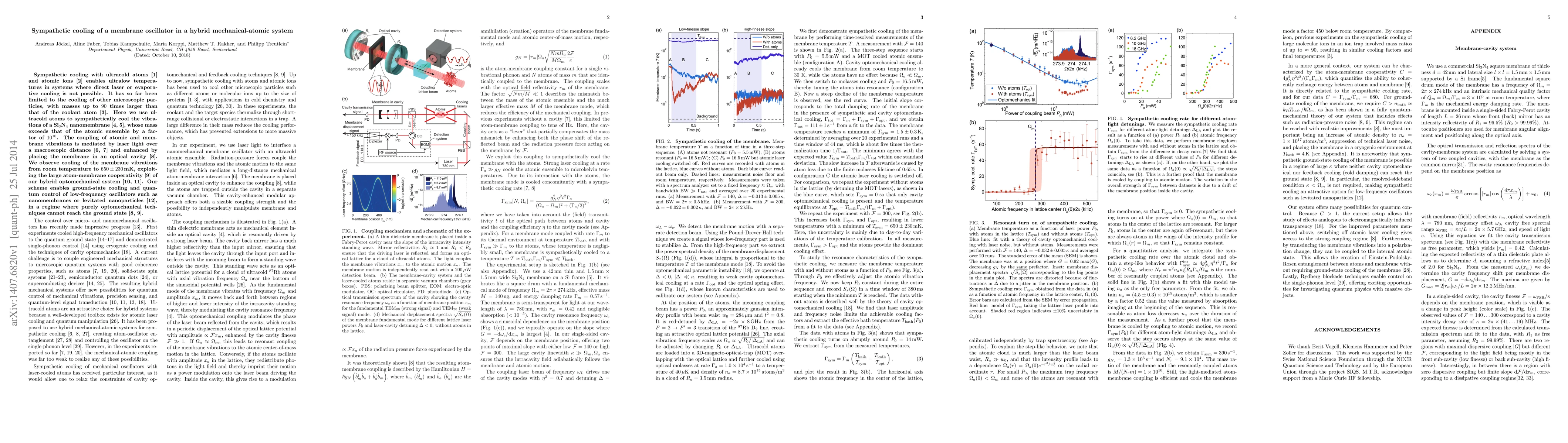 This research demonstrates the sympathetic cooling of a Si$_3$N$_4$ nanomembrane oscillator using ultracold atoms, achieving cooling from room temperature to $650\pm 230$ mK. The cooling exploits enhanced coupling via laser light and an optical cavity, marking a significant advancement in cooling low-frequency oscillators beyond the reach of traditional optomechanical techniques.