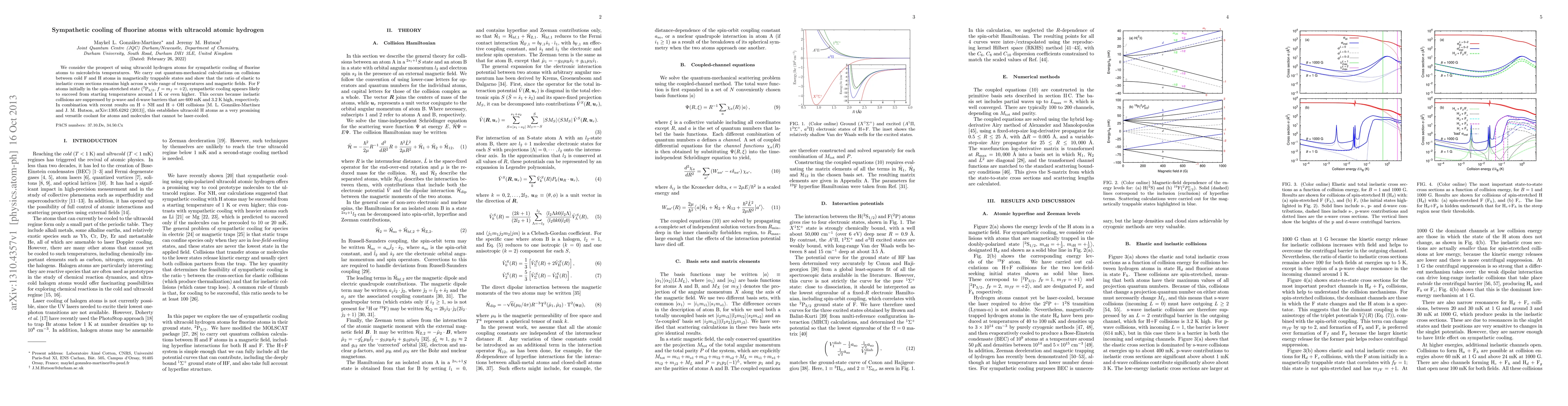 This research investigates the use of ultracold hydrogen atoms for sympathetic cooling of fluorine atoms to microkelvin temperatures, demonstrating that favorable elastic-to-inelastic collision ratios are maintained over a wide range of conditions. The study suggests that sympathetic cooling is feasible for fluorine atoms starting from temperatures as high as 1 K, facilitated by significant p-wave and d-wave collision barriers.