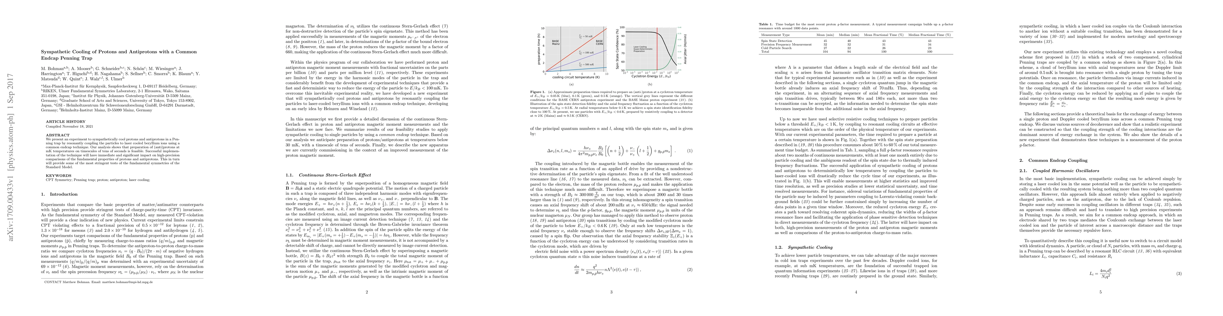 This research demonstrates an experiment to sympathetically cool protons and antiprotons in a Penning trap by coupling them to laser-cooled beryllium ions, achieving mK temperatures in tens of seconds. The successful technique will enable high-precision comparisons of protons and antiprotons, providing stringent tests of fundamental symmetries in the Standard Model.