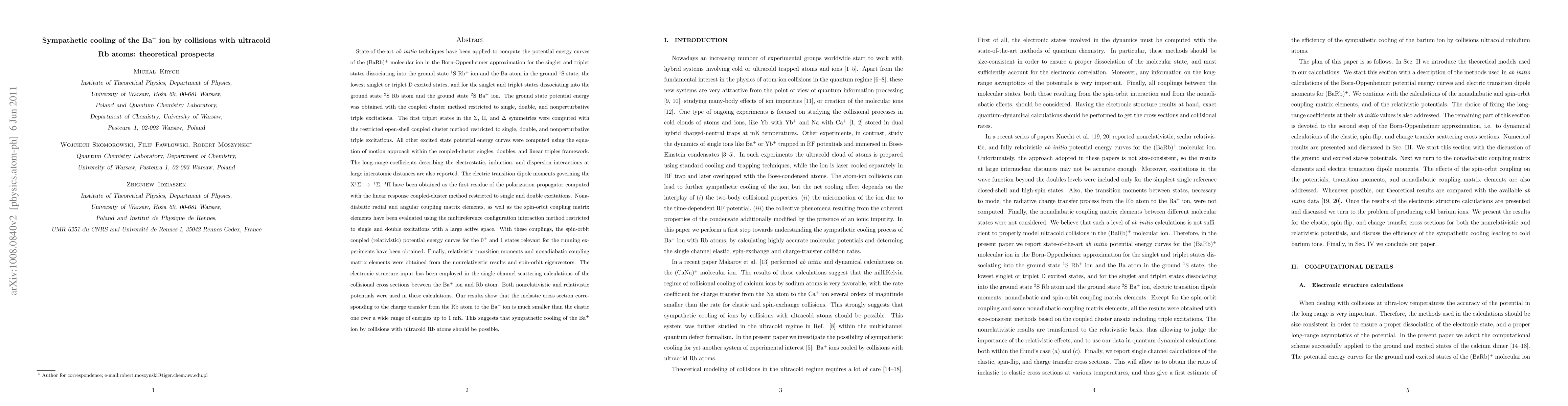 State-of-the-art {\em ab initio} techniques have been applied to compute the potential energy curves of the (BaRb)$^+$ molecular ion in the Born-Oppenheimer approximation. The long-range coefficients describing the electrostatic, induction, and dispersion interactions at large interatomic distances are also reported. The electric transition dipole moments governing the X$^1\Sigma \to ^1\Sigma, ^1\Pi$ have been obtained as the first residue of the polarization propagator computed with the linear response coupled-cluster method restricted to single and double excitations. Nonadiabatic radial and angular coupling matrix elements, as well as the spin-orbit coupling matrix elements have been evaluated using the multireference configuration interaction method restricted to single and double excitations with a large active space. With these couplings, the spin-orbit coupled (relativistic) potential energy curves for the 0$^+$ and 1 states relevant for the running experiments have been obtained. Finally, relativistic transition moments and nonadiabatic coupling matrix elements were obtained from the nonrelativistic results and spin-orbit eigenvectors. The electronic structure input has been employed in the single channel scattering calculations of the collisional cross sections between the Ba$^+$ ion and Rb atom. Both nonrelativistic and relativistic potentials were used in these calculations. Our results show that the inelastic cross section corresponding to the charge transfer from the Rb atom to the Ba$^+$ ion is much smaller than the elastic one over a wide range of energies up to 1 mK. This suggests that sympathetic cooling of the Ba$^+$ ion by collisions with ultracold Rb atoms should be possible.