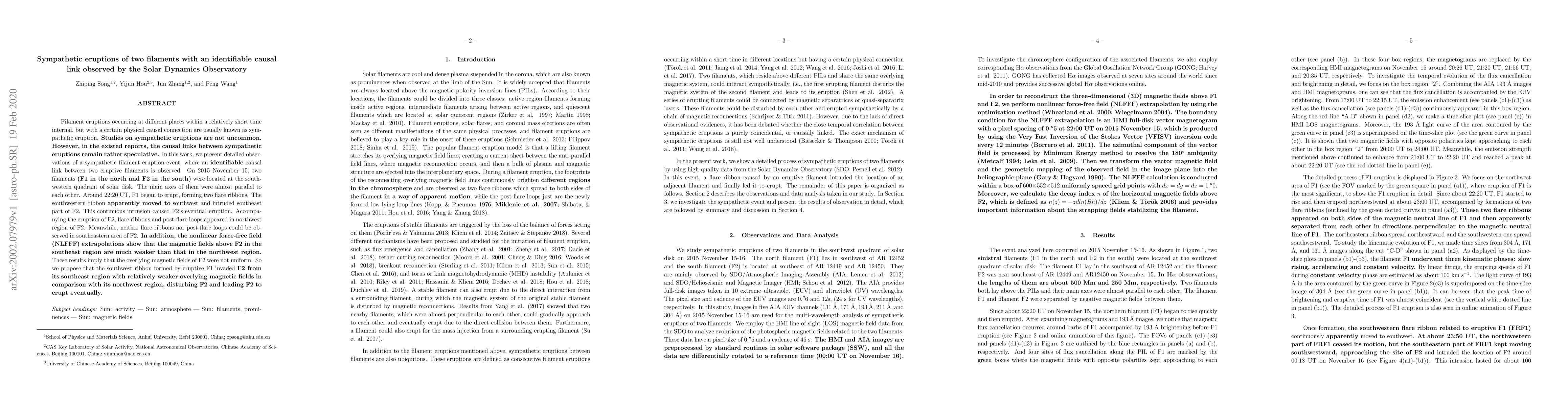 Filament eruptions occurring at different places within a relatively short time internal, but with a certain physical causal connection are usually known as sympathetic eruption. Studies on sympathetic eruptions are not uncommon. However, in the existed reports, the causal links between sympathetic eruptions remain rather speculative. In this work, we present detailed observations of a sympathetic filament eruption event, where an identifiable causal link between two eruptive filaments is observed. On 2015 November 15, two filaments (F1 in the north and F2 in the south) were located at the southwestern quadrant of solar disk. The main axes of them were almost parallel to each other. Around 22:20 UT, F1 began to erupt, forming two flare ribbons. The southwestern ribbon apparently moved to southwest and intruded southeast part of F2. This continuous intrusion caused F2's eventual eruption. Accompanying the eruption of F2, flare ribbons and post-flare loops appeared in northwest region of F2. Meanwhile, neither flare ribbons nor post-flare loops could be observed in southeastern area of F2. In addition, the nonlinear force-free field (NLFFF) extrapolations show that the magnetic fields above F2 in the southeast region are much weaker than that in the northwest region. These results imply that the overlying magnetic fields of F2 were not uniform. So we propose that the southwest ribbon formed by eruptive F1 invaded F2 from its southeast region with relatively weaker overlying magnetic fields in comparison with its northwest region, disturbing F2 and leading F2 to erupt eventually.