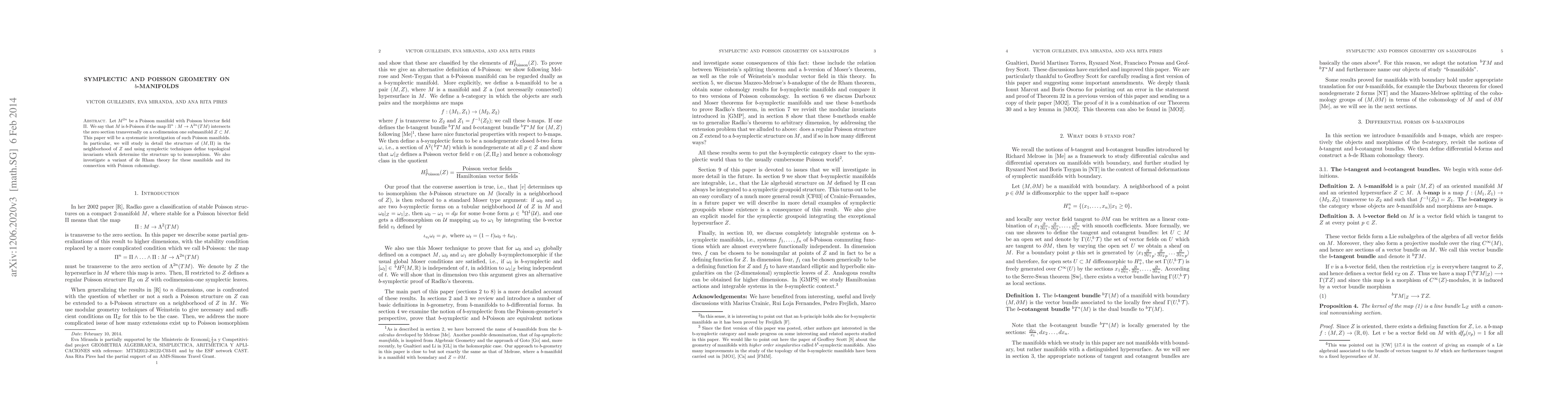 This paper systematically investigates b-Poisson manifolds, a class of Poisson manifolds where the Poisson bivector field intersects the zero section transversally on a codimension one submanifold. It explores the local structure near this submanifold and defines topological invariants using symplectic techniques.