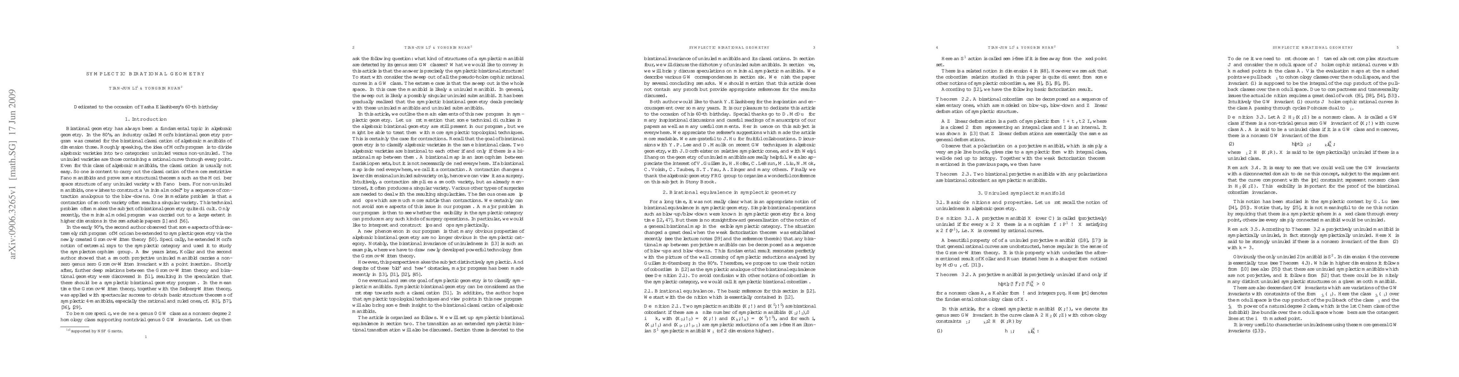 This is a survey on symplectic birational geometry. In arbitrary dimension, this subject is centered around the notion of uniruledness. In low dimensions, we will also discuss Kodaira dimension and minimality.