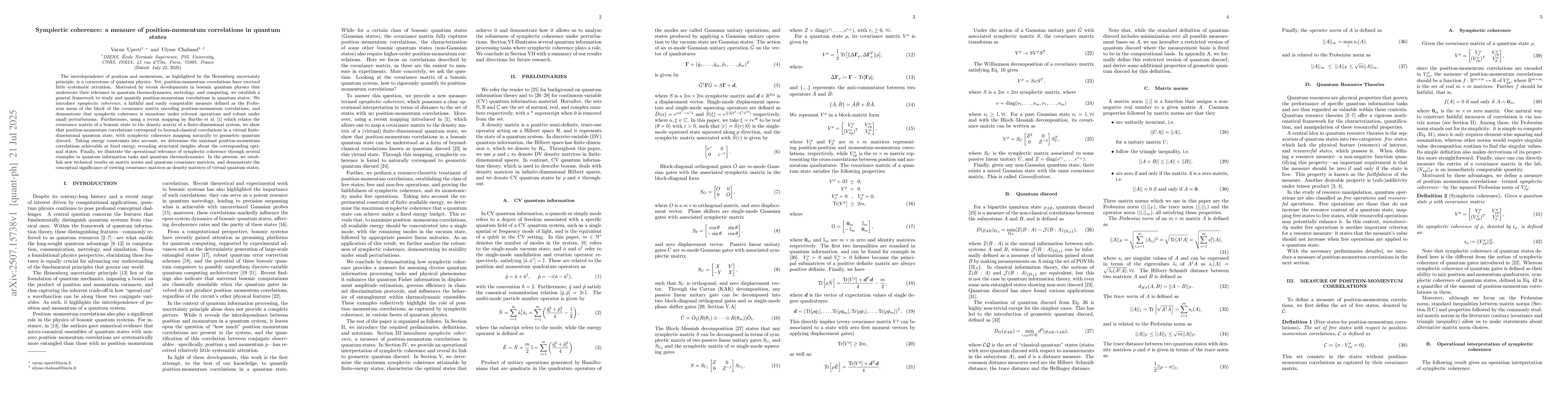 The interdependence of position and momentum, as highlighted by the Heisenberg uncertainty principle, is a cornerstone of quantum physics. Yet, position-momentum correlations have received little systematic attention. Motivated by recent developments in bosonic quantum physics that underscore their relevance in quantum thermodynamics, metrology, and computing, we establish a general framework to study and quantify position-momentum correlations in quantum states. We introduce symplectic coherence, a faithful and easily computable measure defined as the Frobenius norm of the block of the covariance matrix encoding position-momentum correlations, and demonstrate that symplectic coherence is monotone under relevant operations and robust under small perturbations. Furthermore, using a recent mapping by Barthe et al. (Phys. Rev. Lett. 134, 070604) which relates the covariance matrix of a bosonic state to the density matrix of a finite-dimensional system, we show that position-momentum correlations correspond to beyond-classical correlations in a virtual finite-dimensional quantum state, with symplectic coherence mapping naturally to geometric quantum discord. Taking energy constraints into account, we determine the maximal position-momentum correlations achievable at fixed energy, revealing structural insights about the corresponding optimal states. Finally, we illustrate the operational relevance of symplectic coherence through several examples in quantum information tasks and quantum thermodynamics. In the process, we establish new technical results on matrix norms and quantum covariance matrices, and demonstrate the conceptual significance of viewing covariance matrices as density matrices of virtual quantum states.