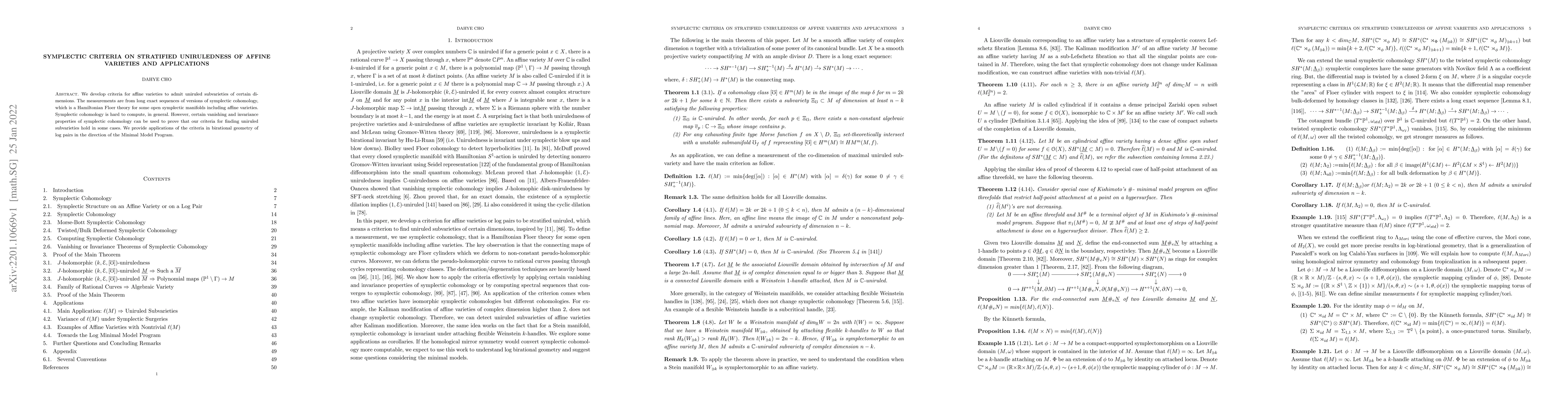 This paper develops criteria for affine varieties to have uniruled subvarieties using properties of symplectic cohomology. It shows that under certain conditions, these criteria can be applied in birational geometry, particularly within the Minimal Model Program.