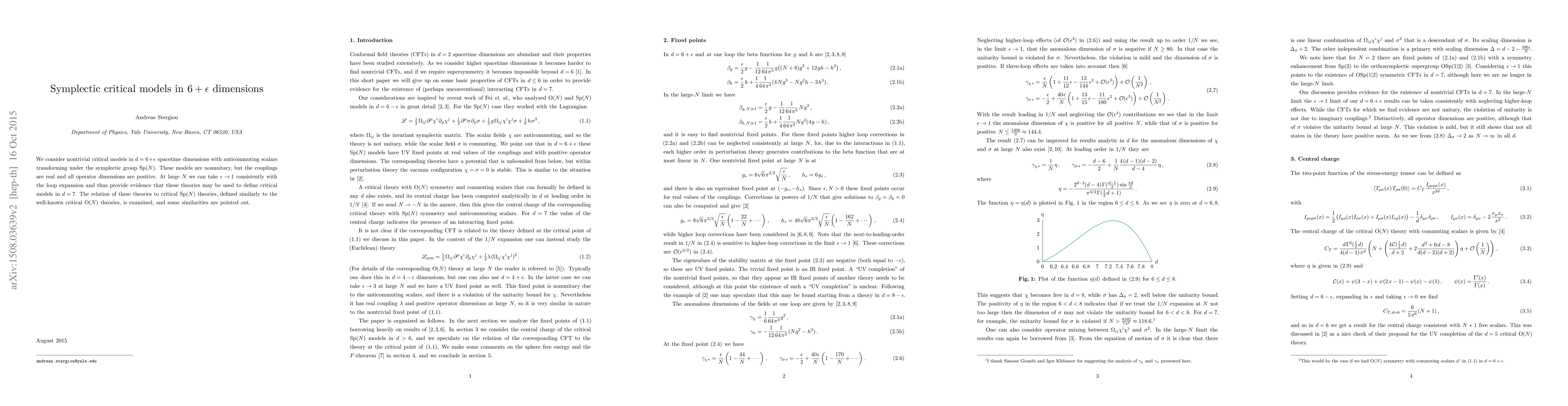 This paper explores nontrivial critical models in $6+\epsilon$ dimensions featuring anticommuting scalars under the symplectic group $\text{Sp}(N)$. It demonstrates that these nonunitary theories, with real couplings and positive operator dimensions, can be consistently extended to $d=7$ at large $N$, suggesting their utility in defining critical models in higher dimensions.