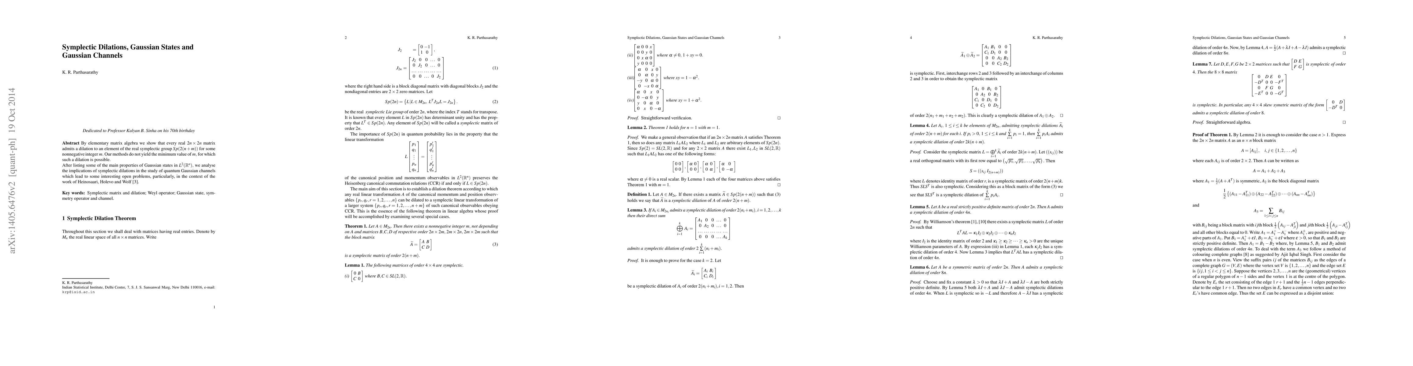 By elementary matrix algebra we show that every real $2n \times 2n$ matrix admits a dilation to an element of the real symplectic group $Sp (2(n+m))$ for some nonnegative integer $m.$ Our methods do not yield the minimum value of $m,$ for which such a dilation is possible. After listing some of the main properties of Gaussian states in $L^2 (\mathbb{R}^n),$ we analyse the implications of symplectic dilations in the study of quantum Gaussian channels which lead to some interesting open problems, particularly, in the context of the work of Heinosaari, Holevo and Wolf \cite{3}.