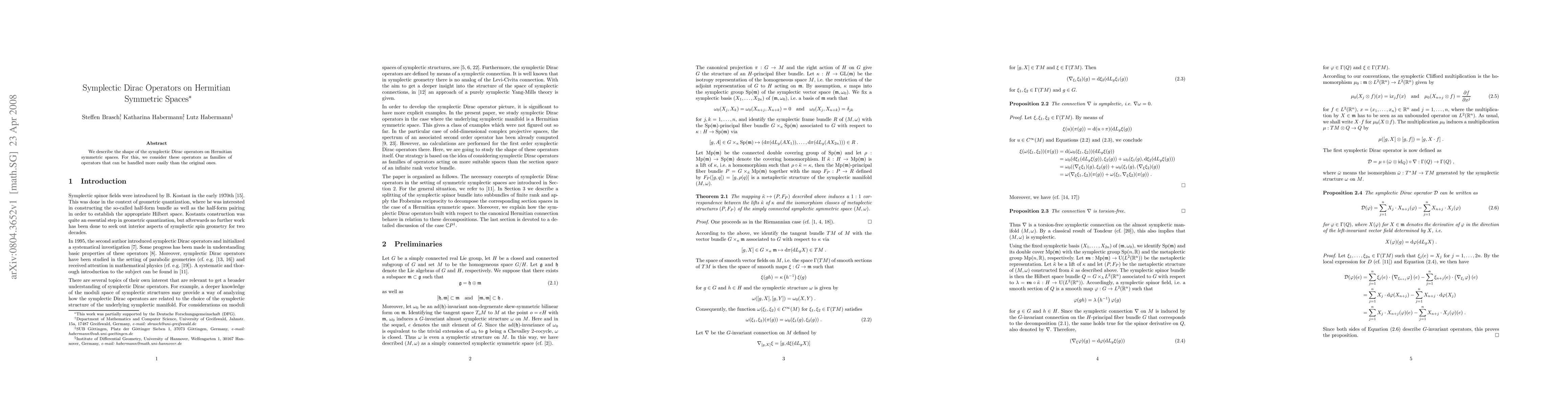 Two-line summary: This paper investigates the structure of symplectic Dirac operators on Hermitian symmetric spaces, presenting them as manageable families of operators for analysis and demonstrating their intrinsic properties. The approach simplifies the study of these complex mathematical objects.