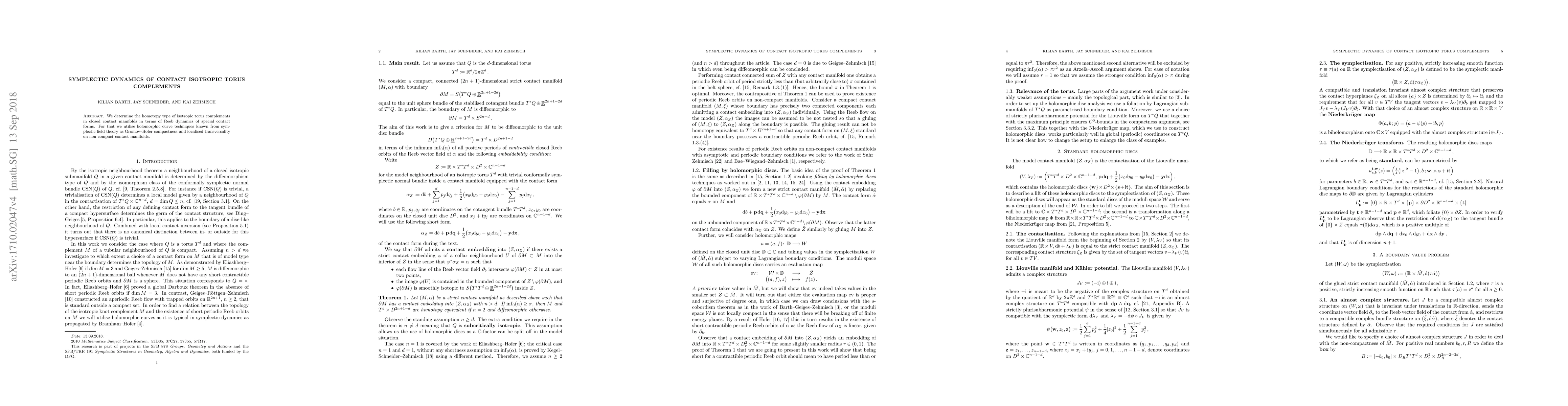 This paper investigates the homotopy type of complements to isotropic tori in closed contact manifolds, employing Reeb dynamics of special contact forms and holomorphic curve techniques from symplectic field theory, including Gromov-Hofer compactness and localized transversality.
