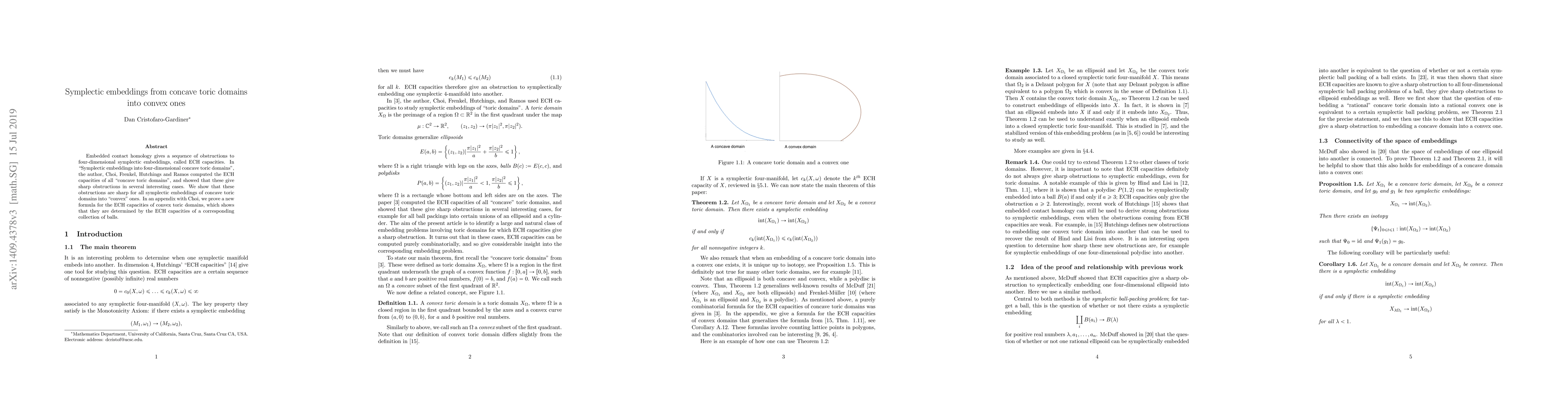 Embedded contact homology gives a sequence of obstructions to four-dimensional symplectic embeddings, called ECH capacities. In "Symplectic embeddings into four-dimensional concave toric domains", the author, Choi, Frenkel, Hutchings and Ramos computed the ECH capacities of all "concave toric domains", and showed that these give sharp obstructions in several interesting cases. We show that these obstructions are sharp for all symplectic embeddings of concave toric domains into "convex" ones. In an appendix with Choi, we prove a new formula for the ECH capacities of convex toric domains, which shows that they are determined by the ECH capacities of a corresponding collection of balls.