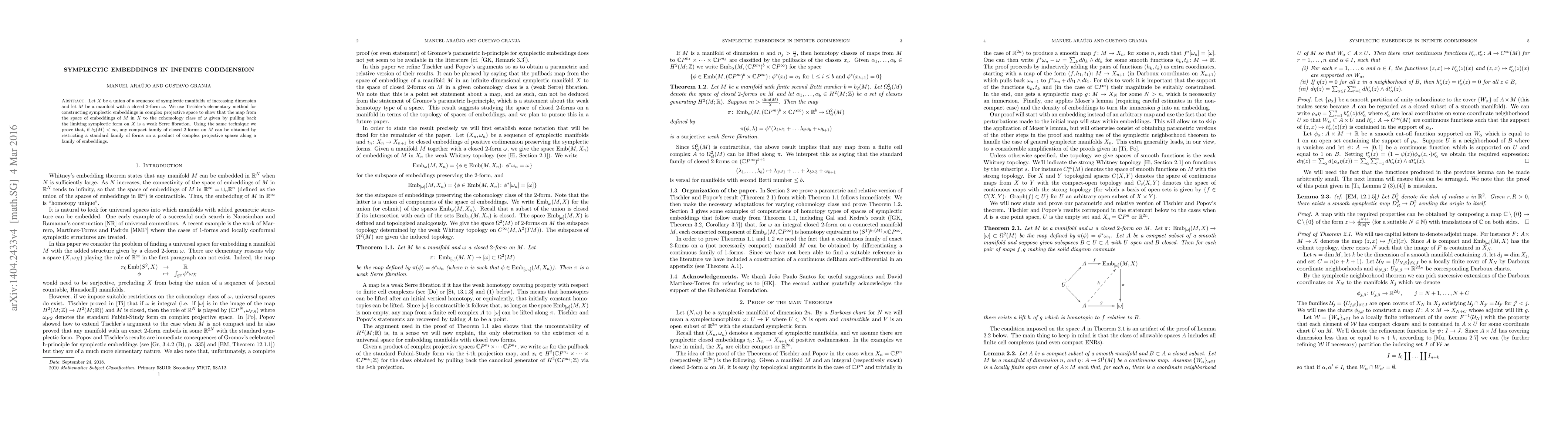 Let $X$ be a union of a sequence of symplectic manifolds of increasing dimension and let $M$ be a manifold with a closed $2$-form $\omega$. We use Tischler's elementary method for constructing symplectic embeddings in complex projective space to show that the map from the space of embeddings of $M$ in $X$ to the cohomology class of $\omega$ given by pulling back the limiting symplectic form on $X$ is a weak Serre fibration. Using the same technique we prove that, if $b_2(M)<\infty$, any compact family of closed $2$-forms on $M$ can be obtained by restricting a standard family of forms on a product of complex projective spaces along a family of embeddings.