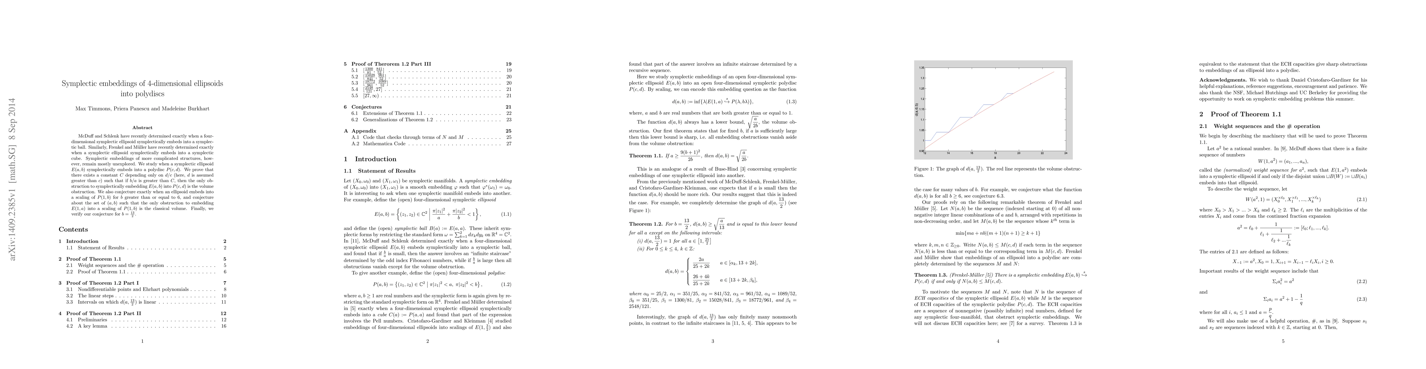 This paper investigates symplectic embeddings of 4-dimensional ellipsoids into polydiscs, proving that for certain ratios of dimensions, volume is the only obstruction. It conjectures embedding conditions for ellipsoids in scaled polydiscs and verifies one such conjecture for a specific case.