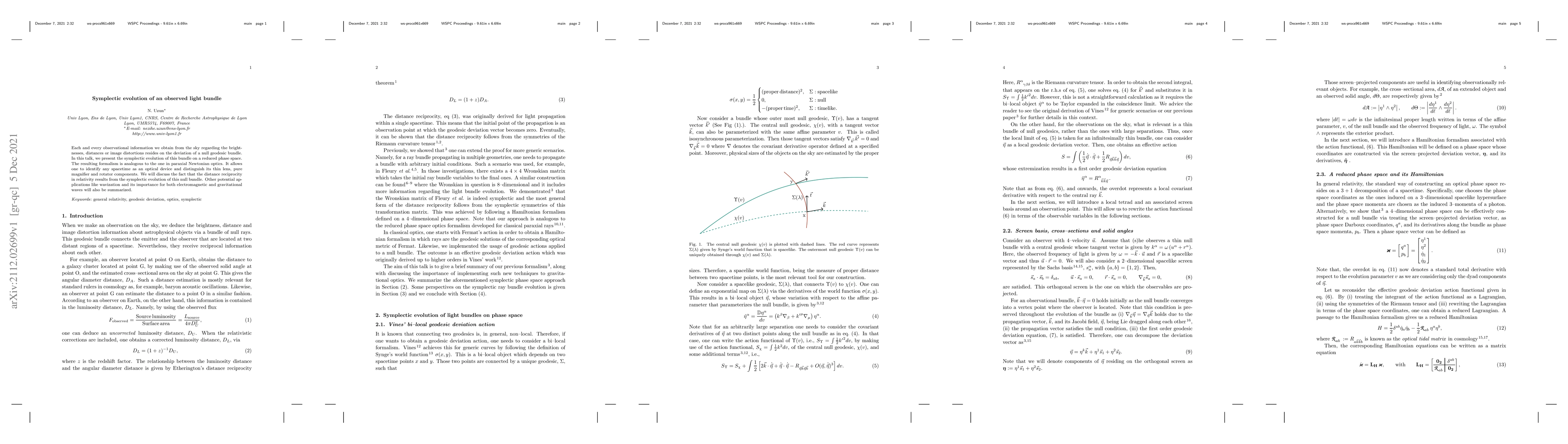 Each and every observational information we obtain from the sky regarding the brightnesses, distances or image distortions resides on the deviation of a null geodesic bundle. In this talk, we present the symplectic evolution of this bundle on a reduced phase space. The resulting formalism is analogous to the one in paraxial Newtonian optics. It allows one to identify any spacetime as an optical device and distinguish its thin lens, pure magnifier and rotator components. We will discuss the fact that the distance reciprocity in relativity results from the symplectic evolution of this null bundle. Other potential applications like wavization and its importance for both electromagnetic and gravitational waves will also be summarized.