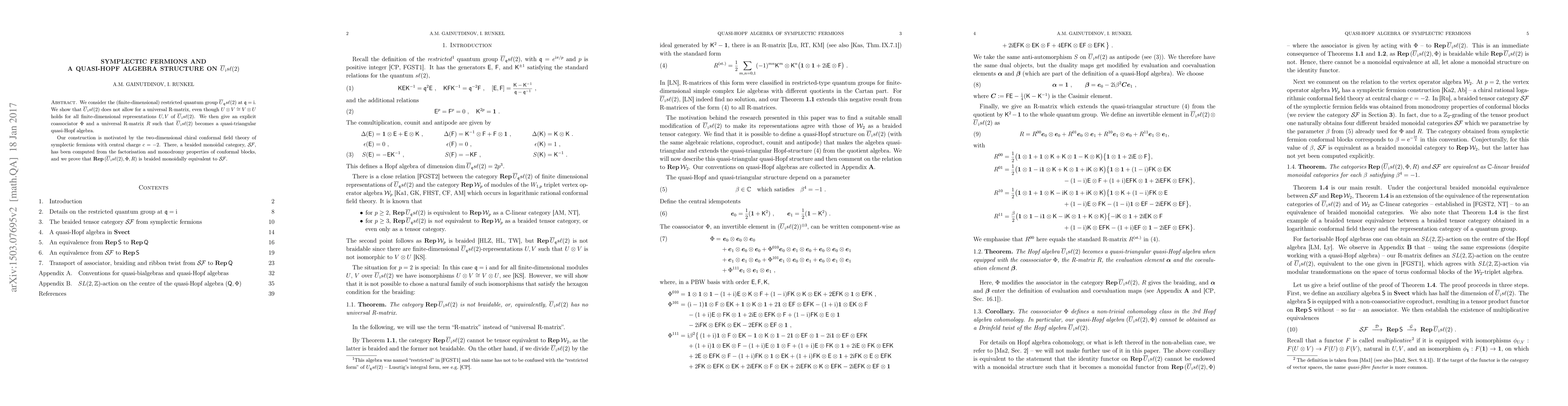 We consider the (finite-dimensional) small quantum group $\bar{U}_q sl(2)$ at $q=i$. We show that $\bar{U}_i sl(2)$ does not allow for an R-matrix, even though $U \otimes V \cong V \otimes U$ holds for all finite-dimensional representations $U,V$ of $\bar{U}_i sl(2)$. We then give an explicit coassociator $\Phi$ and an R-matrix $R$ such that $\bar{U}_i sl(2)$ becomes a quasi-triangular quasi-Hopf algebra. Our construction is motivated by the two-dimensional chiral conformal field theory of symplectic fermions with central charge $c=-2$. There, a braided monoidal category, $\mathcal{SF}$, has been computed from the factorisation and monodromy properties of conformal blocks, and we prove that $\mathrm{Rep}\,(\bar{U}_i sl(2),\Phi,R)$ is braided monoidally equivalent to $\mathcal{SF}$.