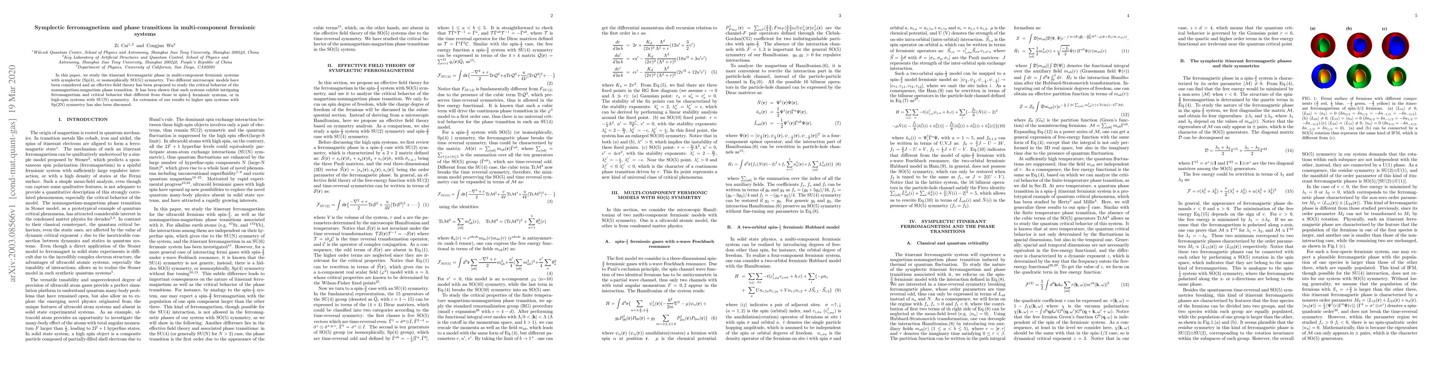This research investigates ferromagnetism in multi-component fermionic systems with Sp(4) symmetry, distinct from spin-1/2 or high-spin SU(N) systems. An effective field theory is proposed to analyze the nonmagnetism-magnetism phase transition, revealing unique critical behavior and extending findings to higher spin Sp(2N) systems.