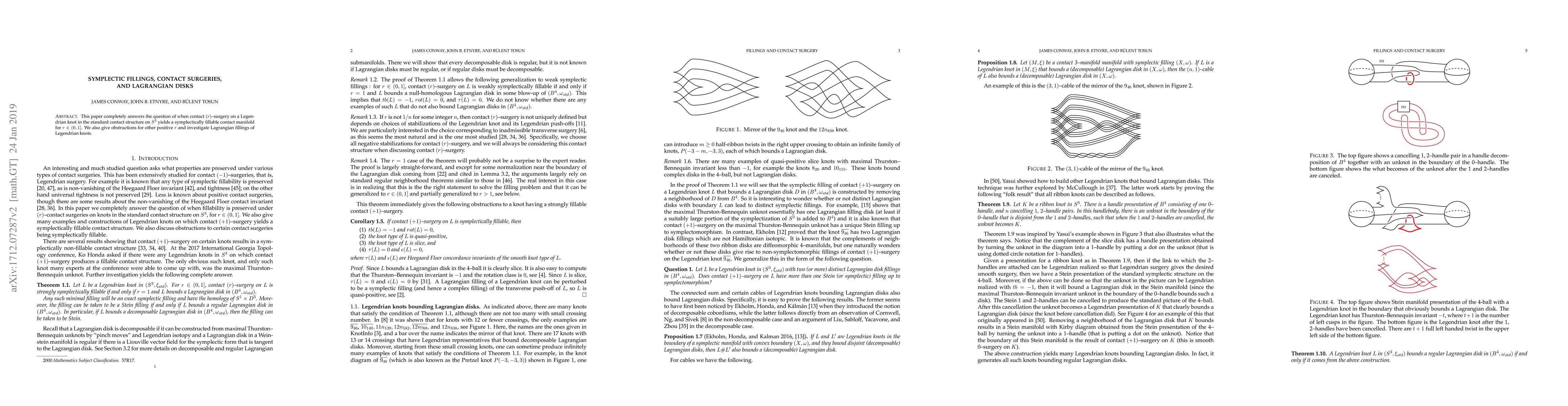 This paper determines conditions under which contact (r)-surgery on a Legendrian knot in the standard 3-sphere results in a symplectically fillable contact manifold for r in (0,1], and provides obstructions for other positive r, while also exploring Lagrangian fillings of Legendrian knots.
