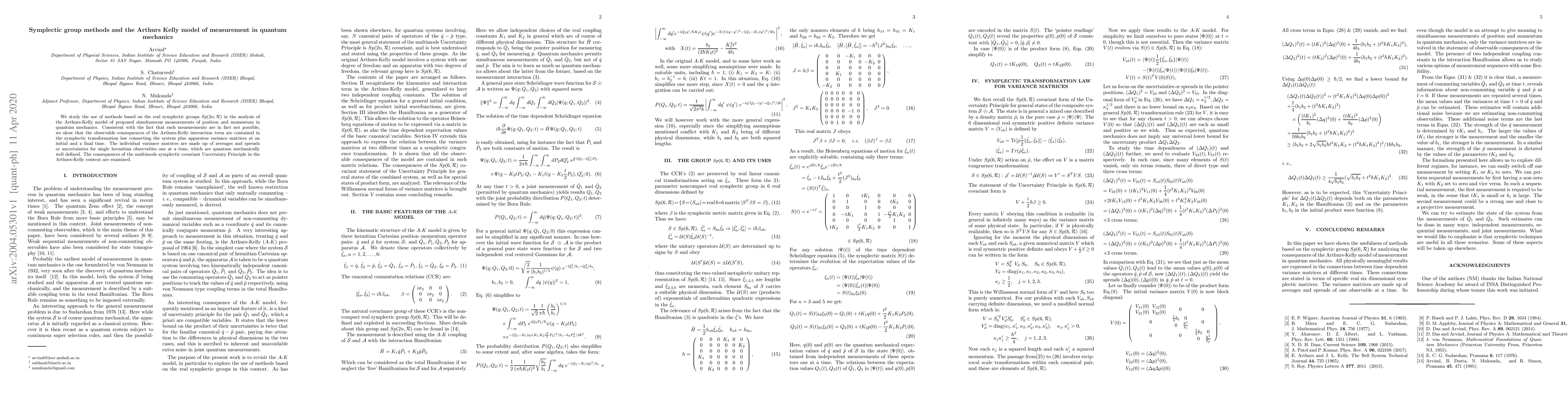 We study the use of methods based on the real symplectic groups $Sp(2n,\mathcal{R})$ in the analysis of the Arthurs-Kelly model of proposed simultaneous measurements of position and momentum in quantum mechanics. Consistent with the fact that such measurements are in fact not possible, we show that the observable consequences of the Arthurs-Kelly interaction term are contained in the symplectic transformation law connecting the system plus apparatus variance matrices at an initial and a final time. The individual variance matrices are made up of averages and spreads or uncertainties for single hermitian observables one at a time, which are quantum mechanically well defined. The consequences of the multimode symplectic covariant Uncertainty Principle in the Arthurs-Kelly context are examined.