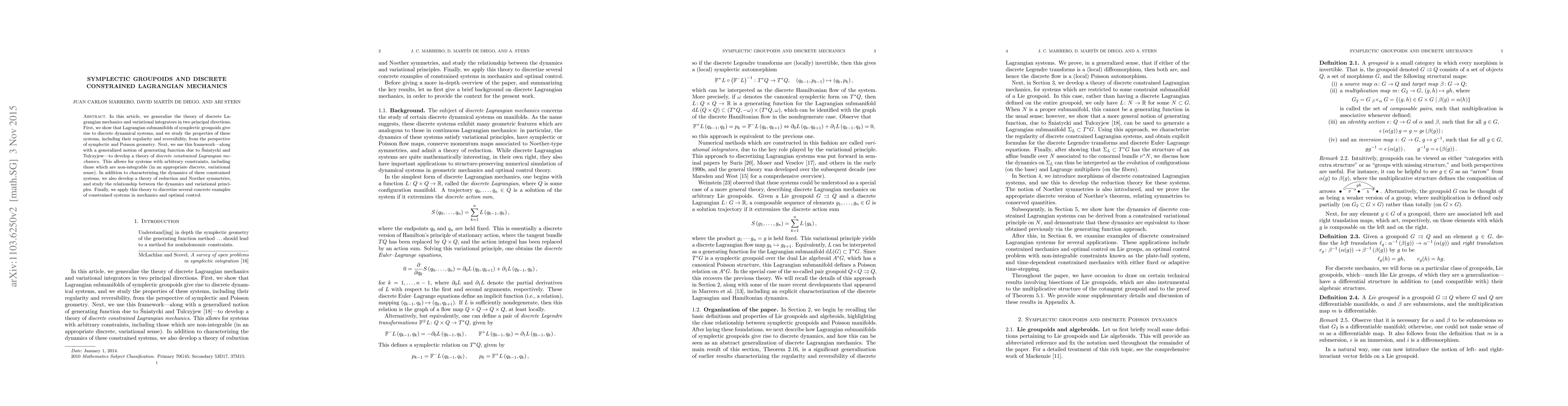 This paper generalizes discrete Lagrangian mechanics and variational integrators by linking Lagrangian submanifolds of symplectic groupoids to discrete dynamical systems, and develops a theory of discrete constrained Lagrangian mechanics that accommodates non-integrable constraints. It also explores reduction, symmetries, and variational principles within this framework.