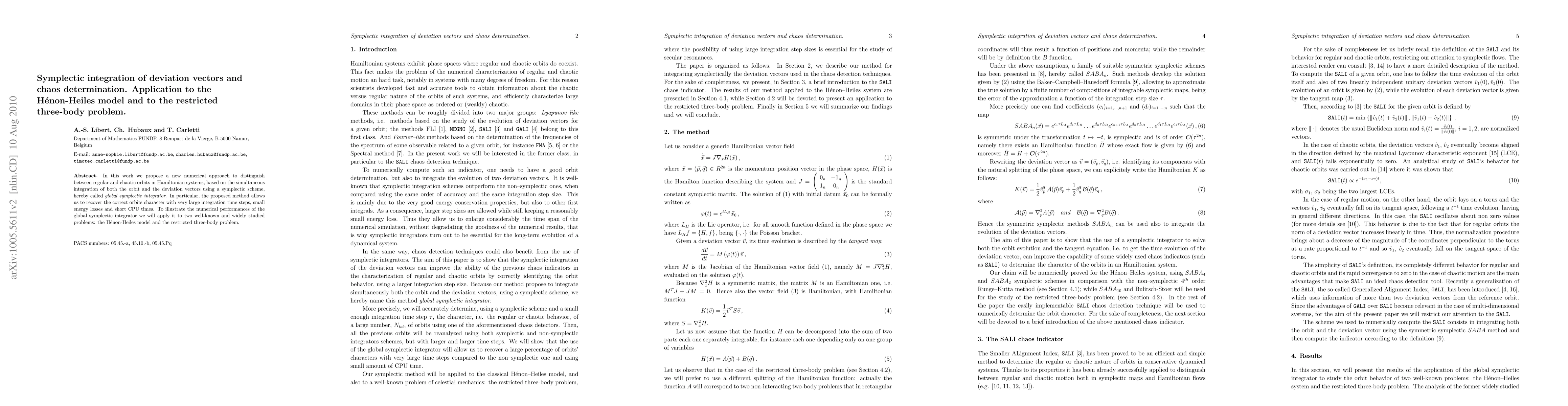 A new numerical approach using symplectic integration helps distinguish between regular and chaotic orbits in Hamiltonian systems, improving accuracy and efficiency.