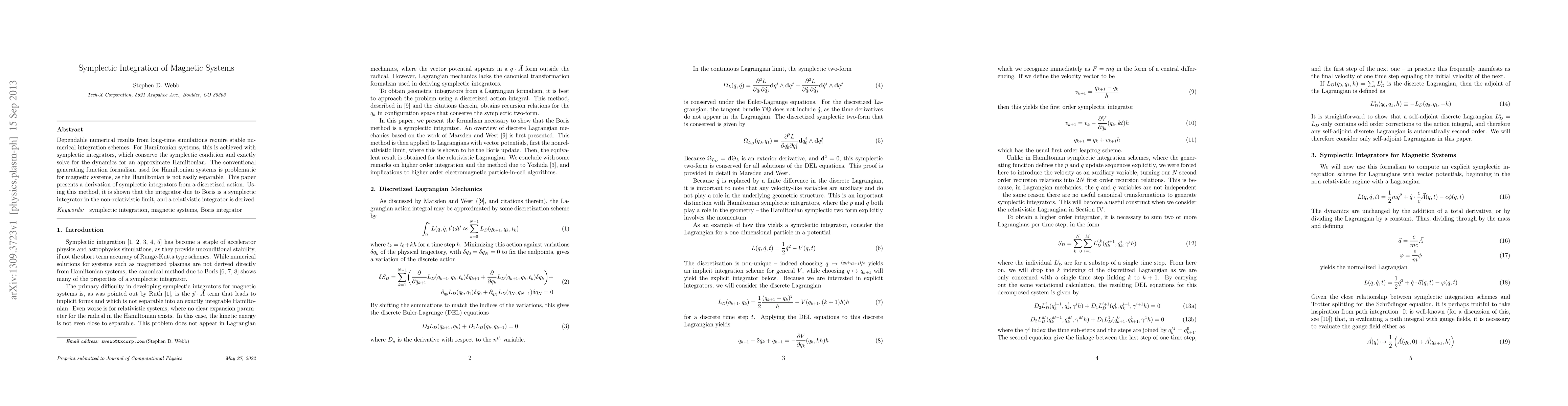 This paper develops symplectic integrators for magnetic systems by discretizing the action, demonstrating that the Boris integrator is symplectic in the non-relativistic limit, and deriving a new relativistic symplectic integrator.