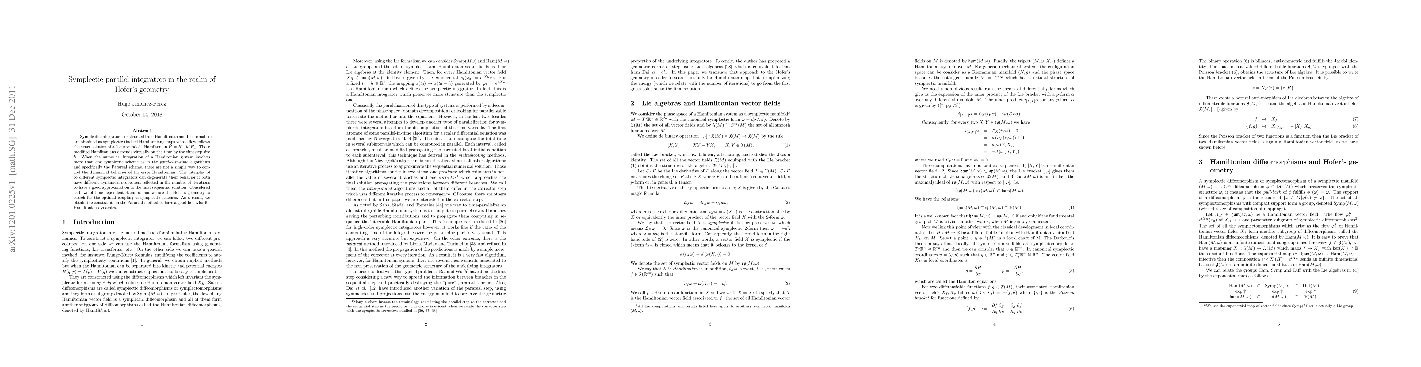 This paper explores symplectic integrators derived from Hamiltonian and Lie formalisms, focusing on their application in Hofer's geometry to optimize parallel-in-time algorithms. It identifies the challenges in controlling error dynamics when combining different symplectic schemes and proposes using Hofer's geometry to achieve optimal coupling and constraints for the Parareal method in Hamiltonian dynamics.