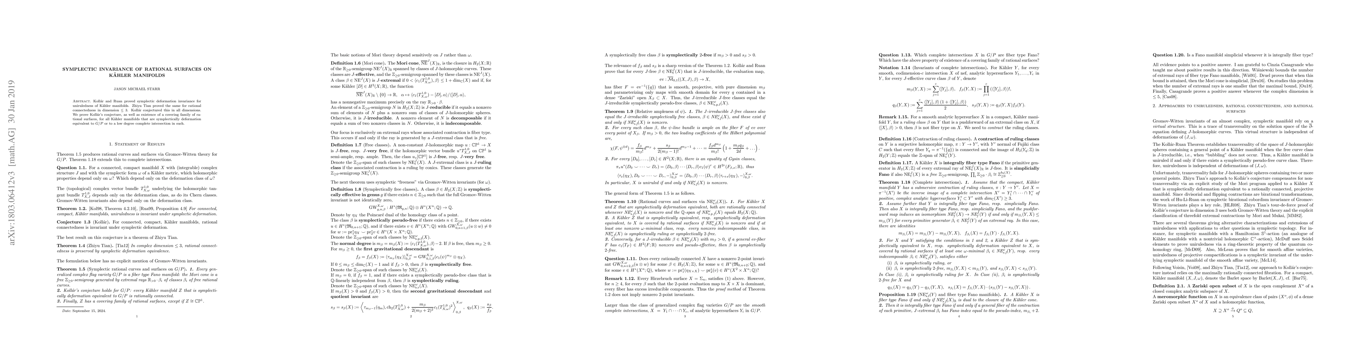 Researchers prove Kollar's conjecture for symplectic invariance of rational surfaces on Kaehler manifolds, resolving the existence of a covering family for specific types of Kaehler manifolds.