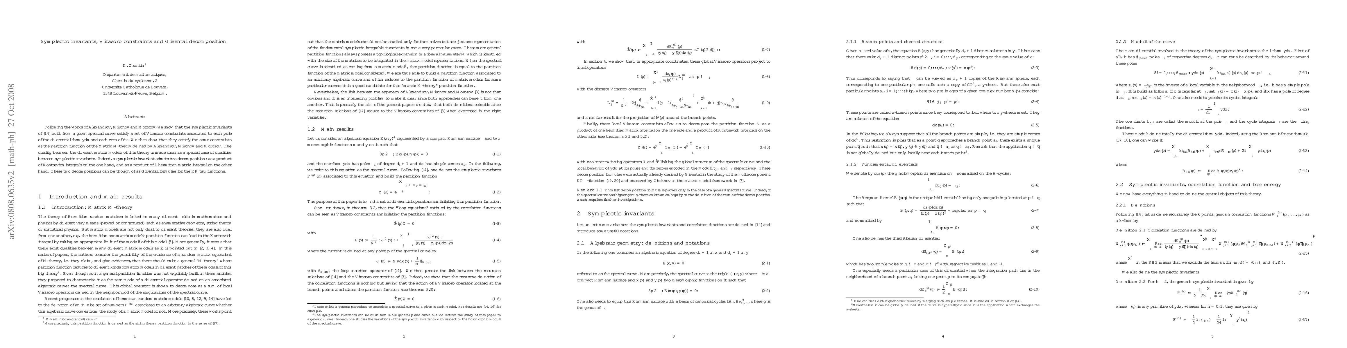 Following the works of Alexandrov, Mironov and Morozov, we show that the symplectic invariants of \cite{EOinvariants} built from a given spectral curve satisfy a set of Virasoro constraints associated to each pole of the differential form $ydx$ and each zero of $dx$ . We then show that they satisfy the same constraints as the partition function of the Matrix M-theory defined by Alexandrov, Mironov and Morozov. The duality between the different matrix models of this theory is made clear as a special case of dualities between symplectic invariants. Indeed, a symplectic invariant admits two decomposition: as a product of Kontsevich integrals on the one hand, and as a product of 1 hermitian matrix integral on the other hand. These two decompositions can be though of as Givental formulae for the KP tau functions.