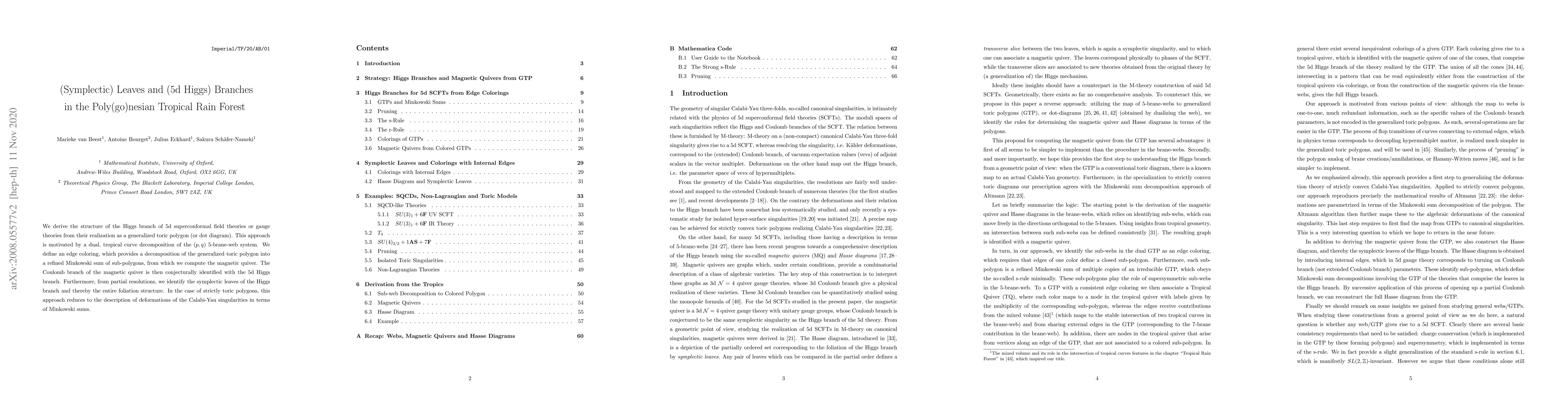 We derive the structure of the Higgs branch of 5d superconformal field theories or gauge theories from their realization as a generalized toric polygon (or dot diagram). This approach is motivated by a dual, tropical curve decomposition of the $(p,q)$ 5-brane-web system. We define an edge coloring, which provides a decomposition of the generalized toric polygon into a refined Minkowski sum of sub-polygons, from which we compute the magnetic quiver. The Coulomb branch of the magnetic quiver is then conjecturally identified with the 5d Higgs branch. Furthermore, from partial resolutions, we identify the symplectic leaves of the Higgs branch and thereby the entire foliation structure. In the case of strictly toric polygons, this approach reduces to the description of deformations of the Calabi-Yau singularities in terms of Minkowski sums.
