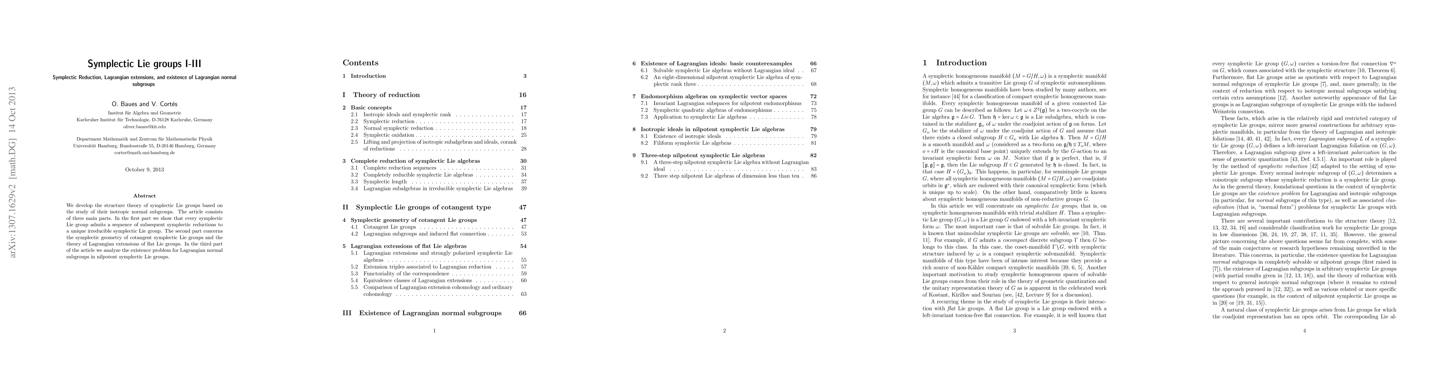 This research develops the structure theory of symplectic Lie groups, focusing on their isotropic normal subgroups. It demonstrates the existence of a sequence of symplectic reductions leading to a unique irreducible symplectic Lie group, explores the symplectic geometry of cotangent symplectic Lie groups, and examines Lagrangian extensions and normal subgroups in nilpotent symplectic Lie groups.