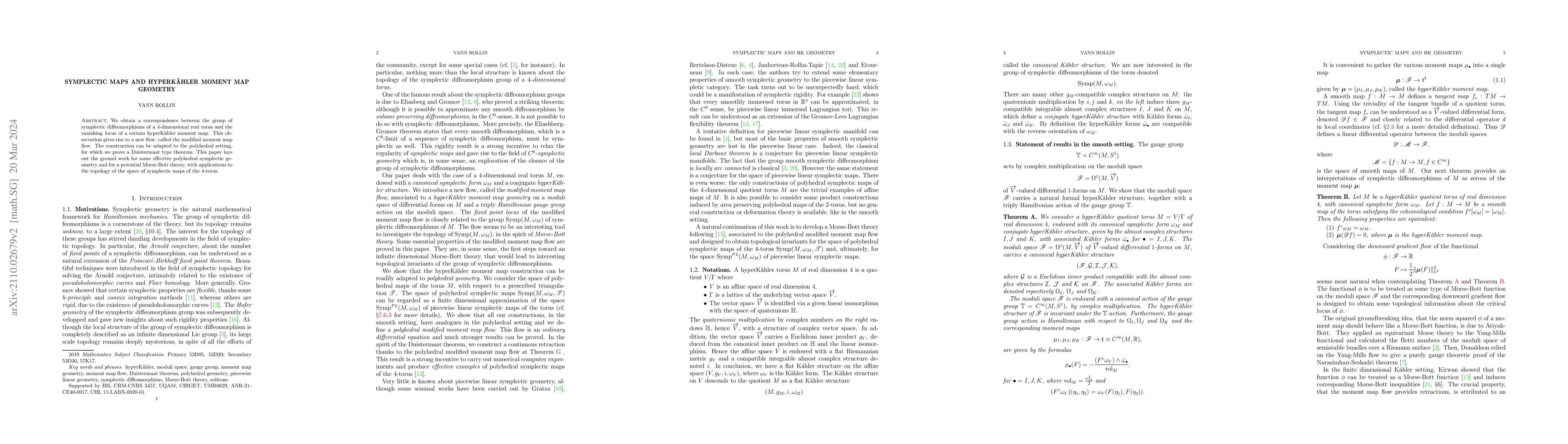 This paper establishes a link between symplectic diffeomorphisms of a 4-dimensional torus and the vanishing locus of a hyperKähler moment map, introducing a modified moment map flow. The study extends to polyhedral settings with a proven Duistermaat theorem, laying foundational work for advanced polyhedral symplectic geometry and potential Morse-Bott theory applications in the topology of symplectic maps.