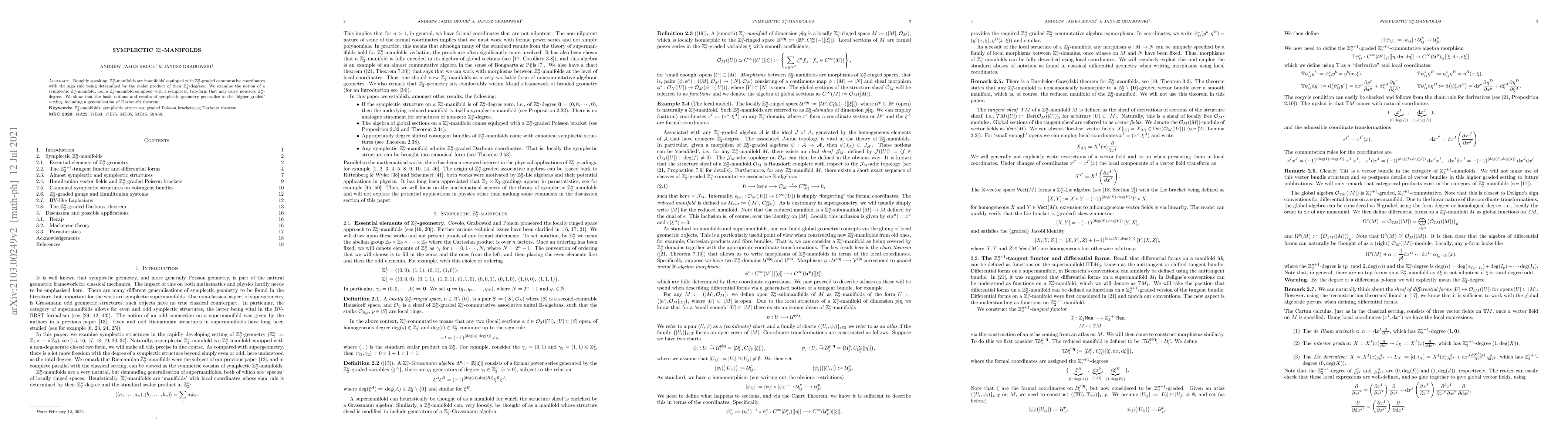 This paper explores the concept of symplectic $\mathbb{Z}_2^n$-manifolds, which are $\mathbb{Z}_2^n$-graded commutative coordinate spaces with a symplectic two-form. It demonstrates that key results of symplectic geometry, including a generalized Darboux's theorem, apply in this higher graded context.
