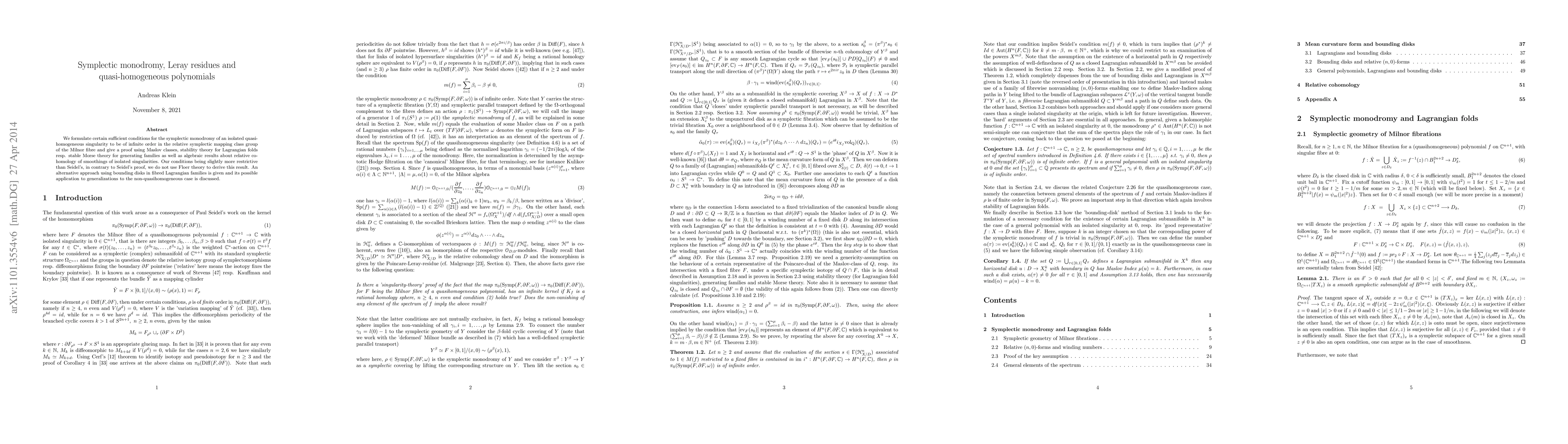 We formulate certain sufficient conditions for the symplectic monodromy of an isolated quasihomogeneous singularity to be of infinite order in the relative symplectic mapping class group of the Milnor fibre and give a proof using Maslov classes, stability theory for Lagrangian folds resp. stable Morse theory for generating families as well as algebraic results about relative cohomology of smoothings of isolated singularities. Our conditions being slightly more restrictive than Seidel's, in contrary to Seidel's proof, we do not use Floer theory to derive this result. An alternative approach using bounding disks in fibred Lagrangian families is given and its possible application to generalizations to the non-quasihomogeneous case is discussed.