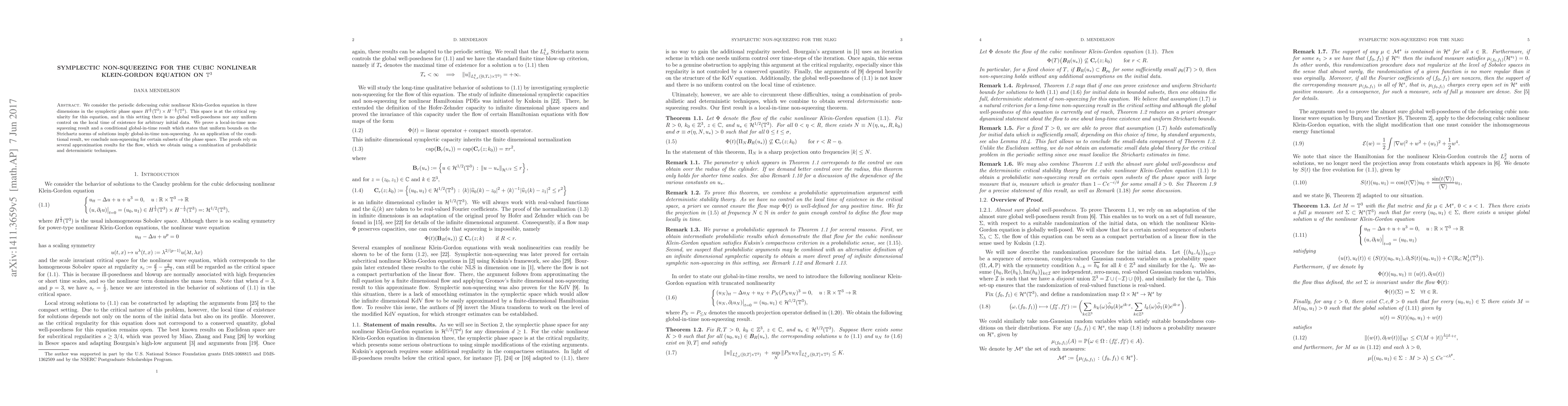 The paper proves a local-in-time non-squeezing result for the cubic nonlinear Klein-Gordon equation in 3D space, and shows that uniform bounds on solution Strichartz norms imply global-in-time non-squeezing.