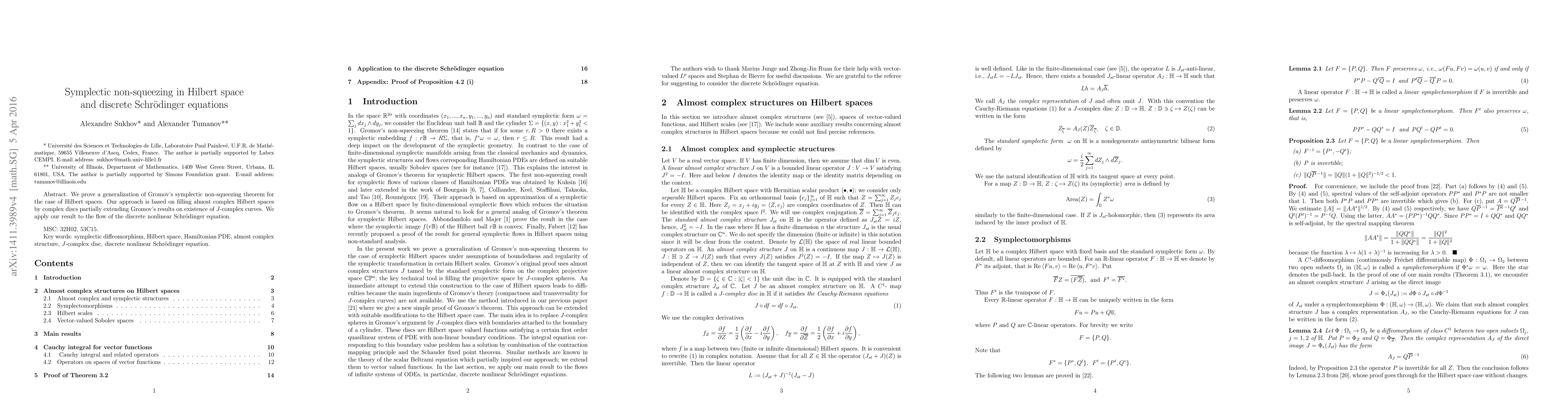This paper generalizes Gromov's symplectic non-squeezing theorem to Hilbert spaces using almost complex structures and complex discs. The findings are then applied to the dynamics of the discrete nonlinear Schrödinger equation.